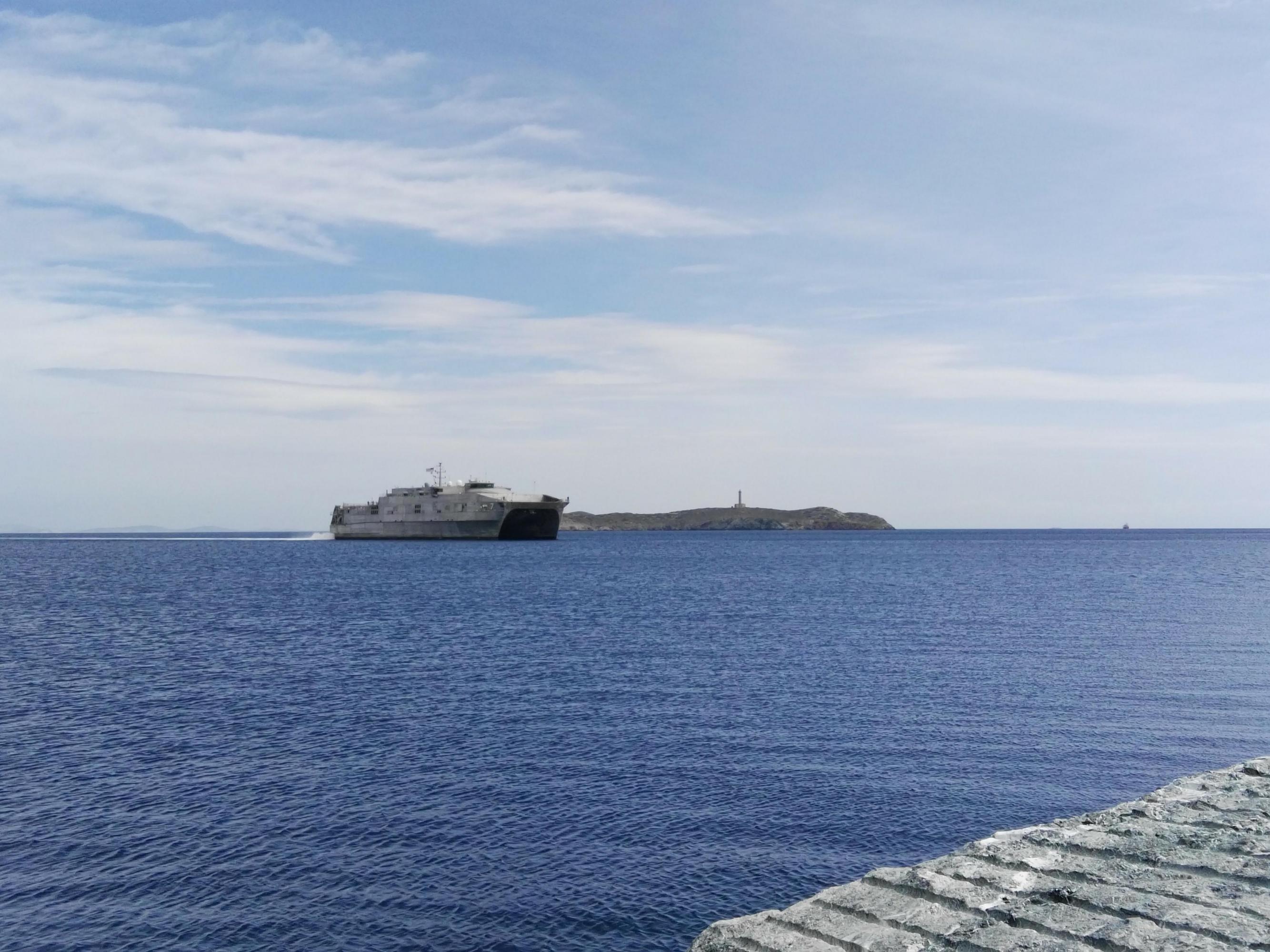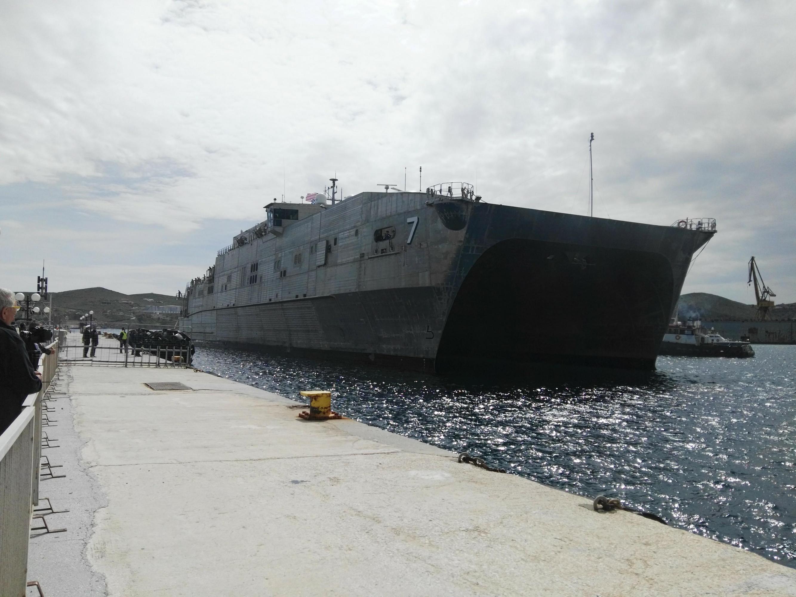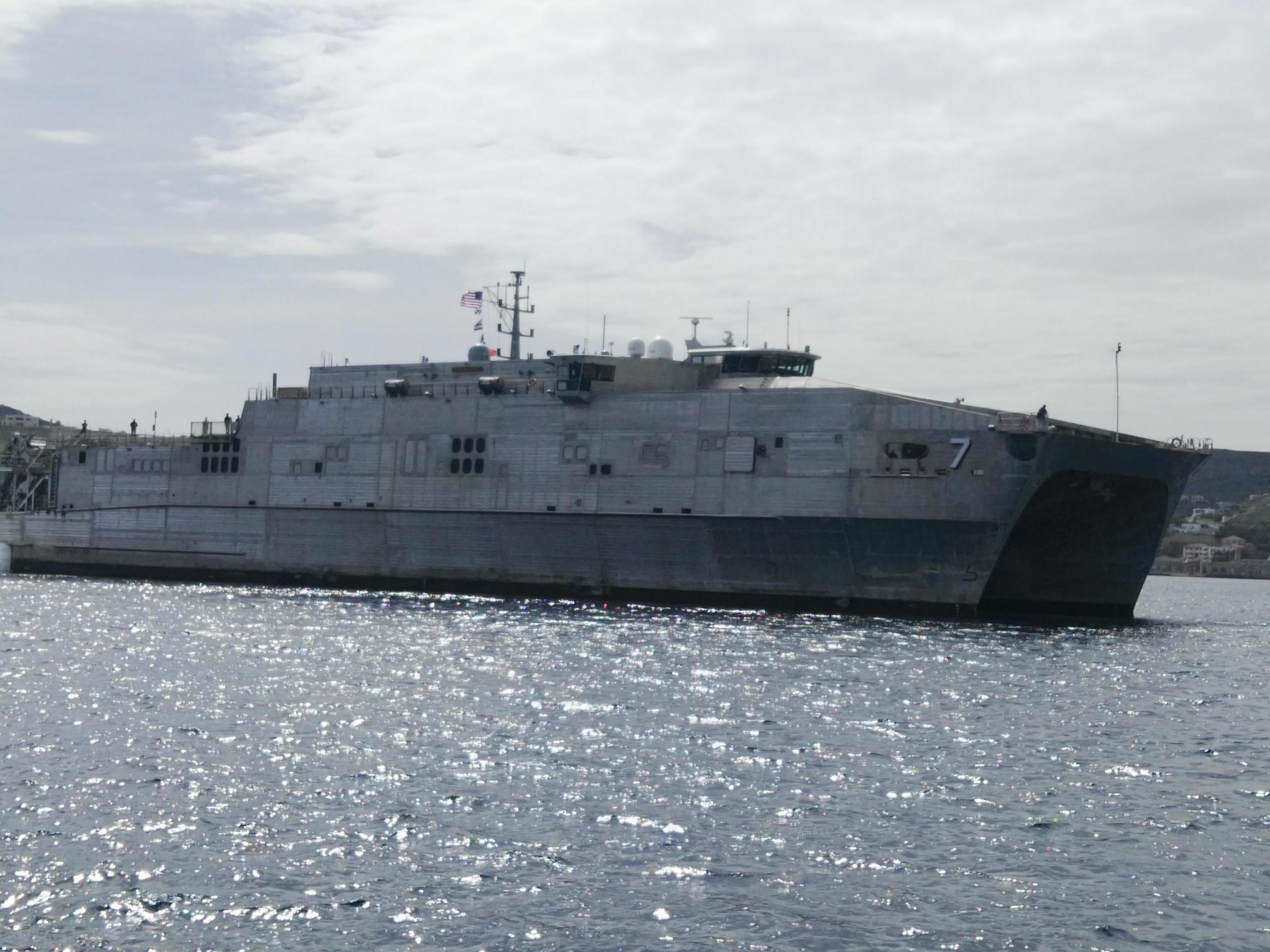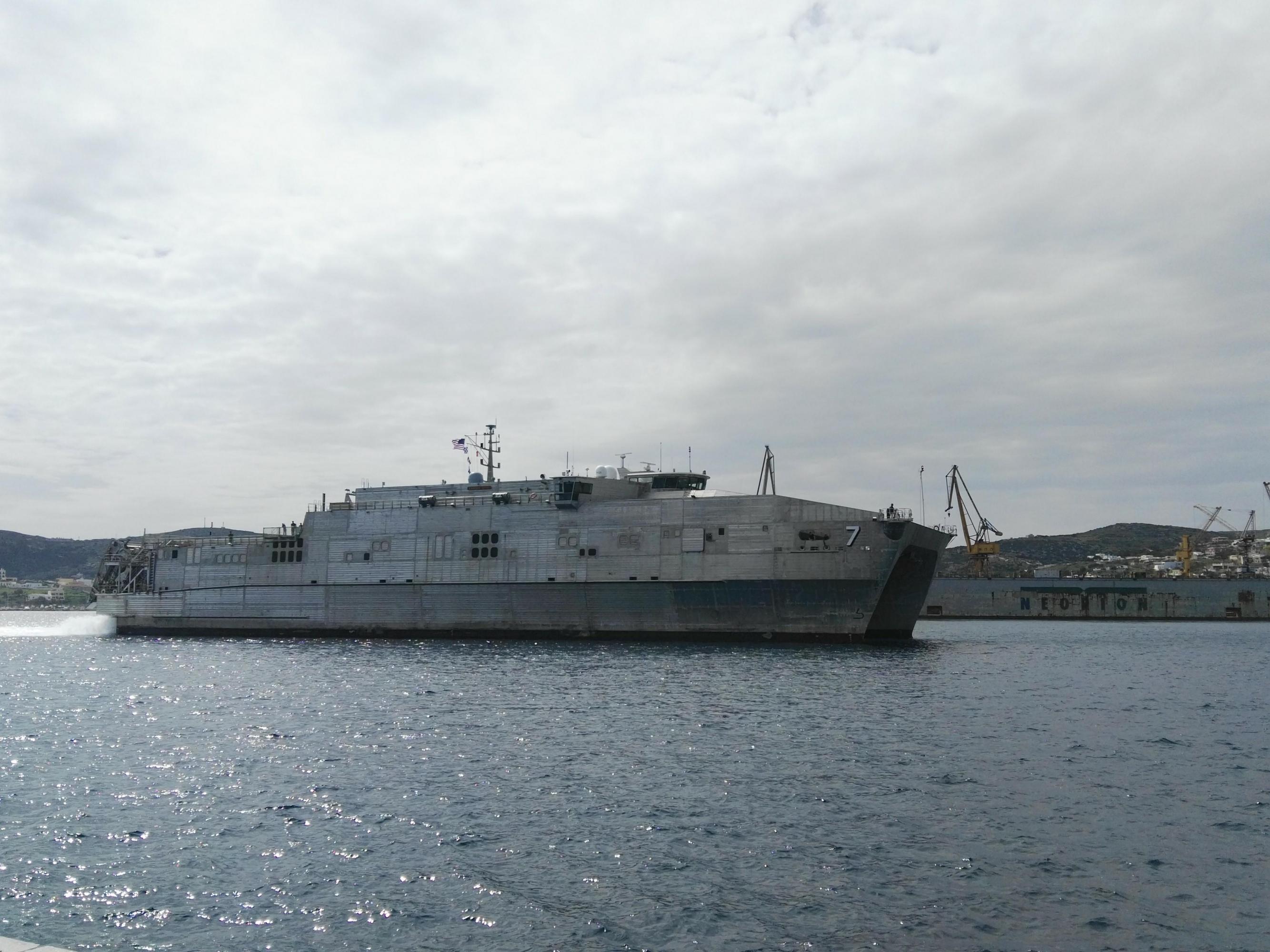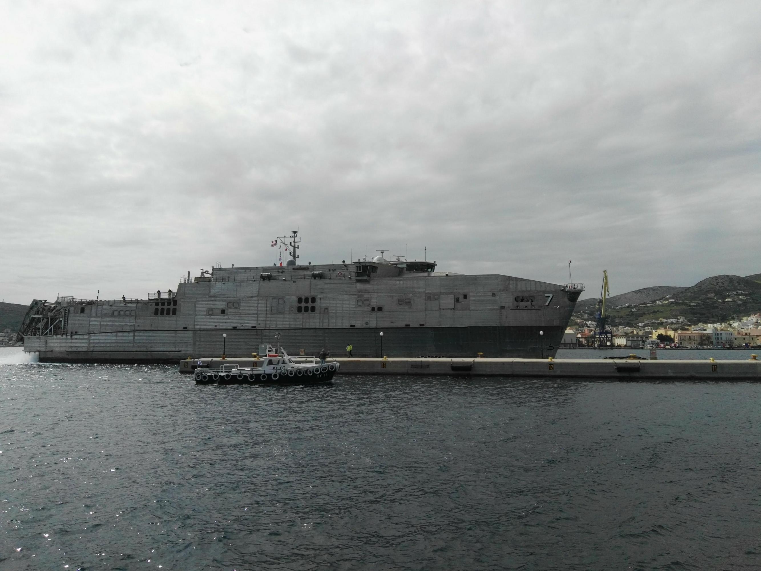 Στο λιμάνι της Ερμούπολης κατέπλευσε catamaran του Πολεμικού Ναυτικού των ΗΠΑ, σήμερα, λίγο μετά τη μία και μισή το μεσημέρι, το οποίο και πλαγιοδέτησε στην προβλήτα των κρουαζιερόπλοιων.