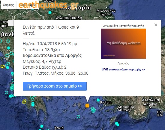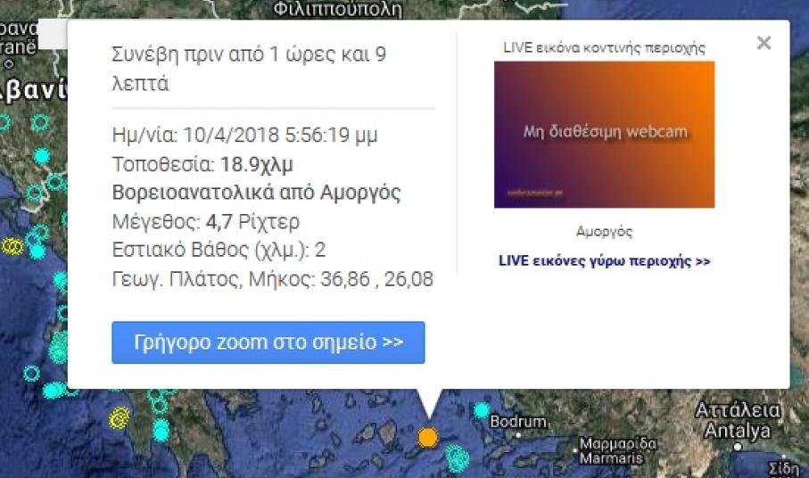 Οι σχετικές πληροφορίες θέλουν ο σεισμός να έλαβε χώρα 18.9 χλμ βορειοανατολικά της Αμοργού και το μέγεθός του να είναι 4.7 Ρίχτερ.