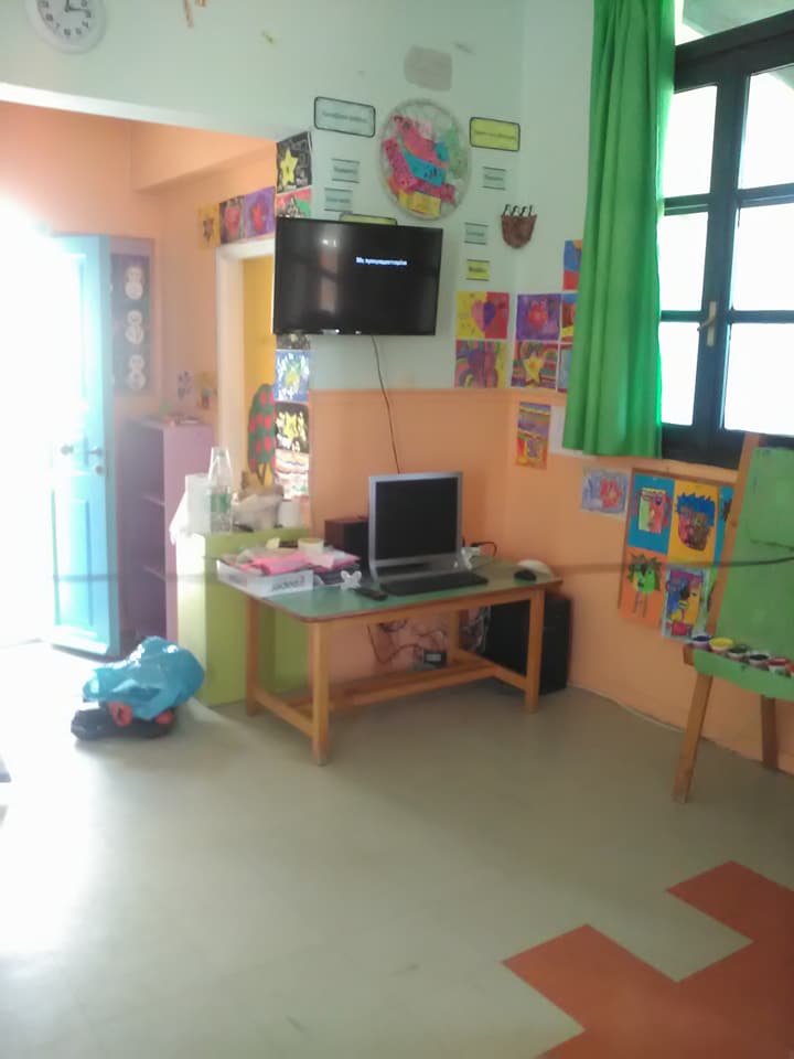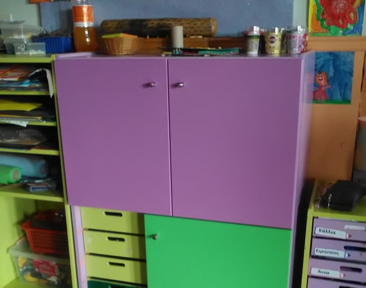 Παράλληλα, μερίμνησαν για την τοποθέτηση καλυμμάτων στα ράφια με τα παιχνίδια των παιδιών, ενώ φρόντισαν για τη συντήρηση των εισόδων στα wc. Τέλος, οι γονείς βοήθησαν στην απόκτηση και τοποθέτηση μεγάλης οθόνης και νέου υπολογιστή τελευταίας τεχνολογίας, προκειμένου να διευκολύνεται το παιδαγωγικό έργο των νηπιαγωγών.