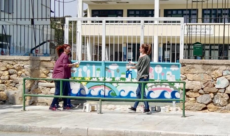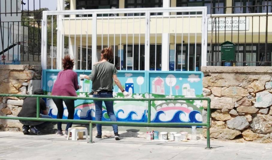 Ειδικότερα, η πλευρά του Συλλόγου Γονέων και Κηδεμόνων με εθελοντική παρουσία συμβάλλει στην καλυτέρευση της εξωτερικής εικόνας του σχολικού κτιρίου, το οποίο θα πρέπει να σημειωθεί πως είναι από τα πιο παλαιά σχολεία της Σύρου. Ως εκ τούτου, τόσο εσωτερικά στην αυλή του σχολείου αναπτύχθηκαν τοιχογραφίες με θέματα ευχάριστα για τα παιδιά, όπως παρομοίως τέλος της περασμένης εβδομάδας, βελτιώθηκε και η είσοδος του σχολείου.