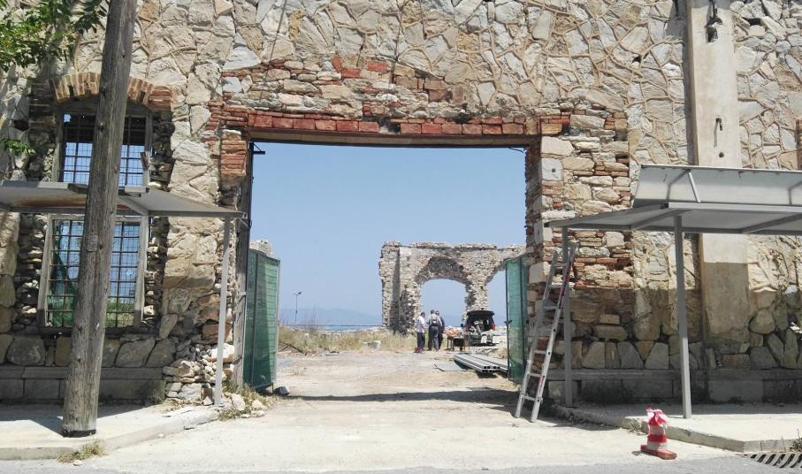 Τα ερείπια του πρώην εργοστασίου Λαδόπουλου στο παραλιακό μέτωπο της πόλης υποστυλώνονται από τον σημερινό ιδιοκτήτη του, τον ΟΑΕΔ, με τις σχετικές εργασίες να είναι σε εξέλιξη καθ΄ όλη τη διάρκεια των τελευταίων ημερών.