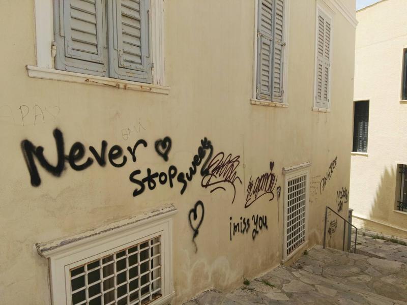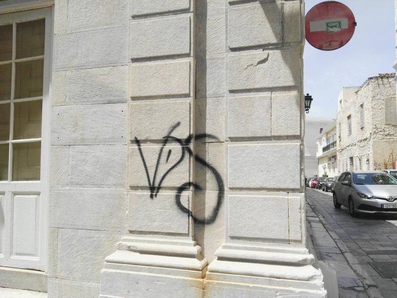 Με προκλητική ασυνειδησία εκφράζουν την όποια πολιτική θέση ή διαμαρτυρία τους πολίτες του νησιού, οι οποίοι με περίσσιο θράσος συνεχίζουν συστηματικά να καταστρέφουν αισθητικά την εικόνα δημόσιων και ιδιωτικών νεοκλασικών κτιρίων της Ερμούπολης.