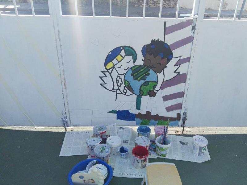 Ο πρόεδρος του Συλλόγου Γονέων και Κηδεμόνων βοήθησε σημαντικά στην προετοιμασία προκειμένου να μπορούν τα παιδιά να αναπτύξουν ελεύθερα και με ασφάλεια τις πολύχρωμες “πινελιές” τους στα παγκάκια, αφού βελτιώθηκε με σχετικές εργασίες η επιφάνειά τους ενώ επιπλέον, νέα όψη έλαβε και η είσοδος του Σχολείου.