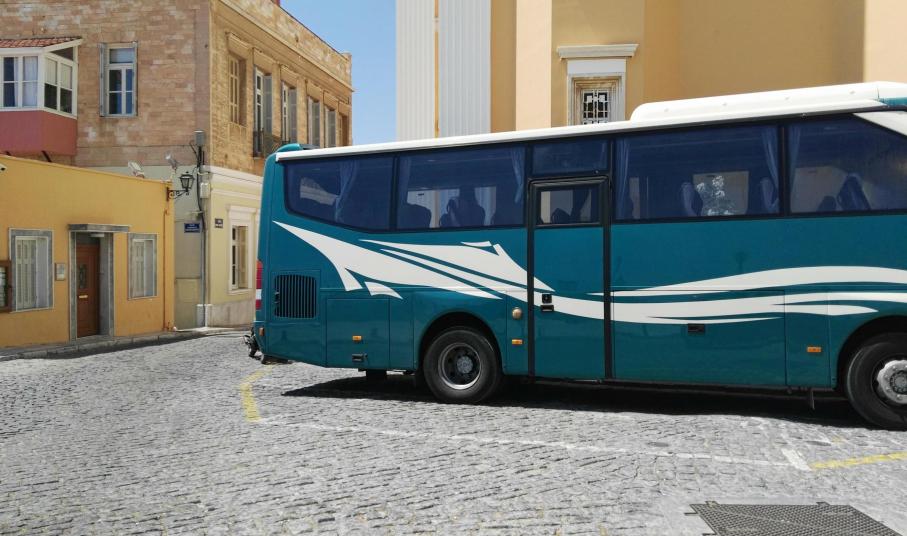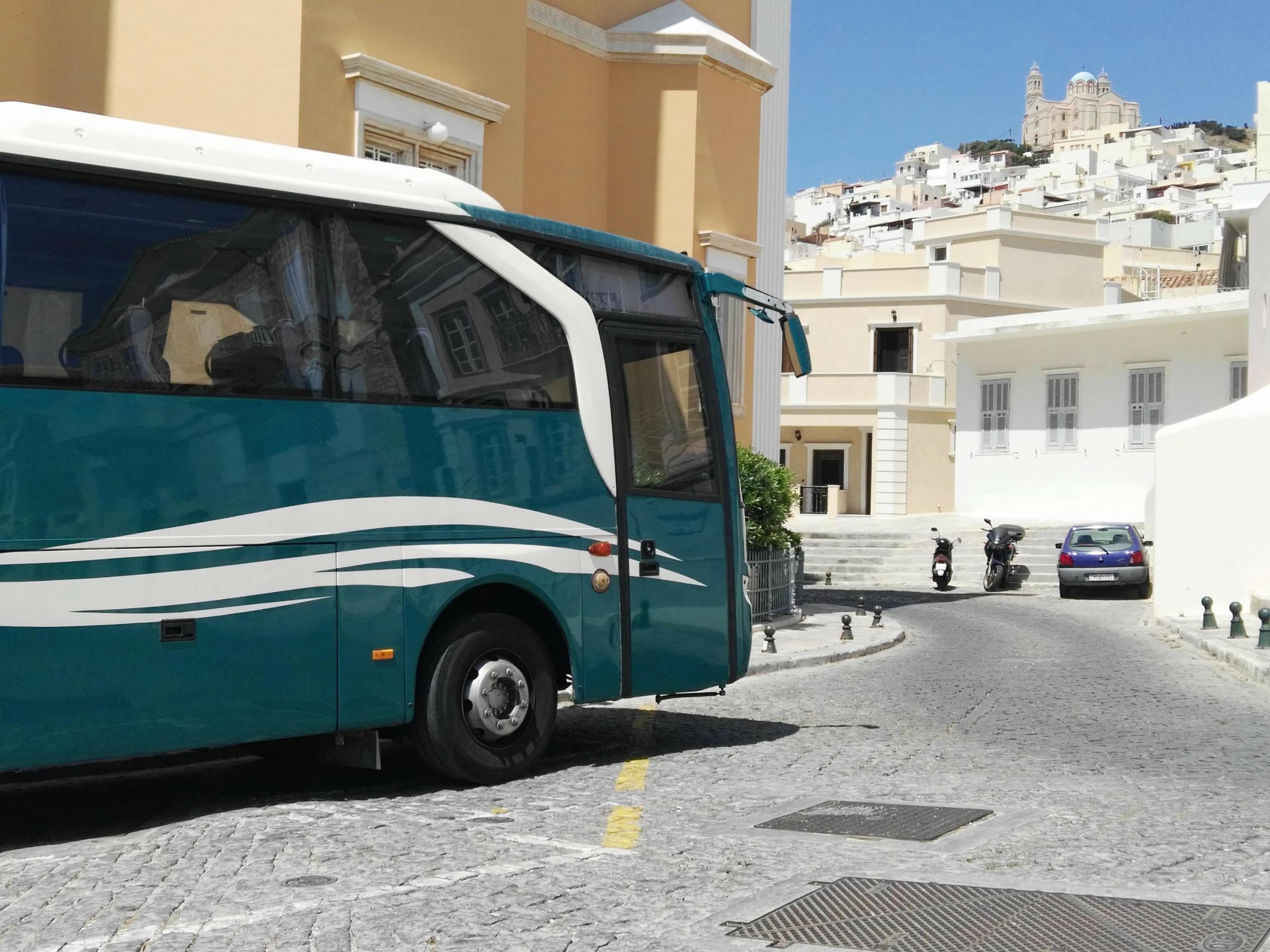 Ο όγκος των μεγάλων λεωφορείων κανονικά θα έπρεπε να λειτουργεί αποτρεπτικά για τους αρμόδιους όσον αφορά στη διέλευσή τους από την “καρδιά” της Ερμούπολης που χαρακτηρίζεται για τους δρόμους με περιορισμένο πλάτος κι ως εκ τούτου, η εταιρεία στο πλαίσιο της σύμβασής της με τον Δήμο Σύρου – Ερμούπολης για την κάλυψη της αστικής συγκοινωνίας αξιοποιεί τα mini bus.