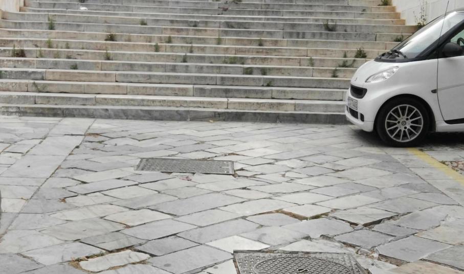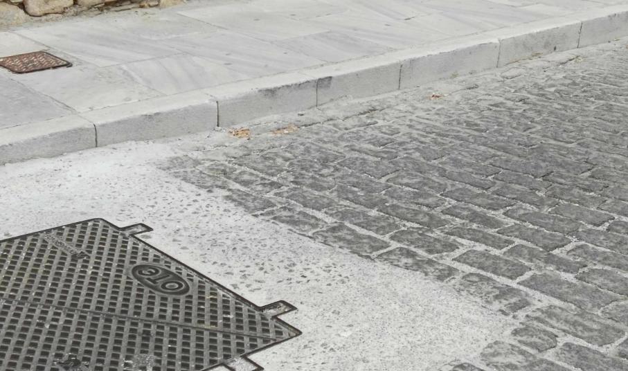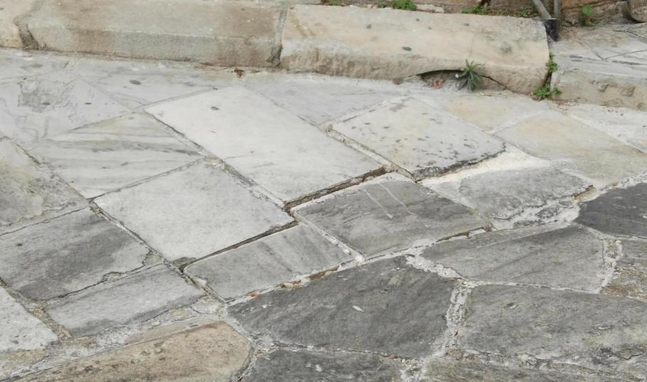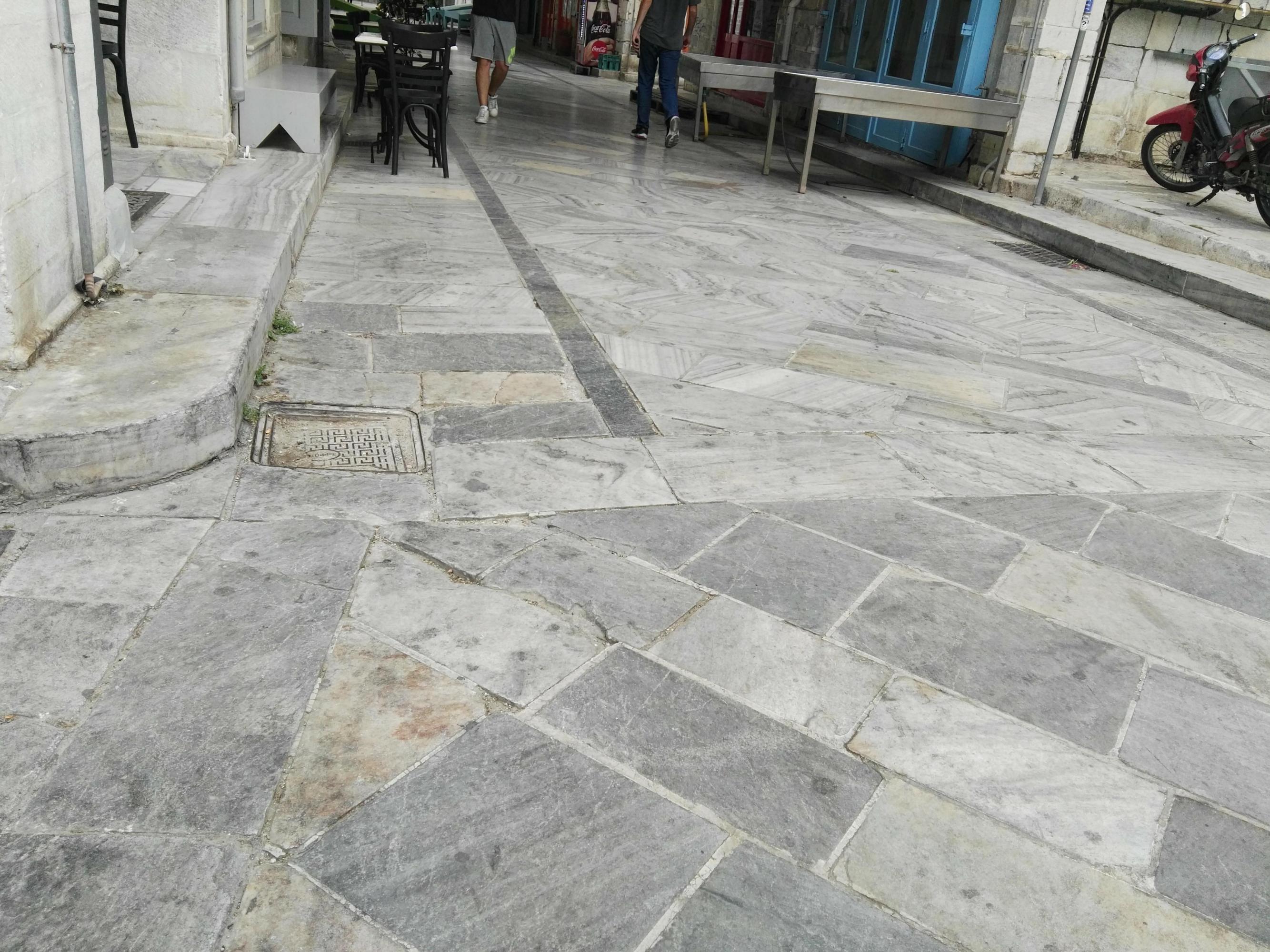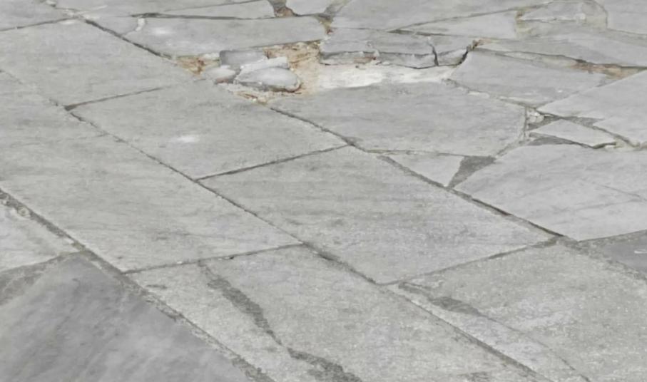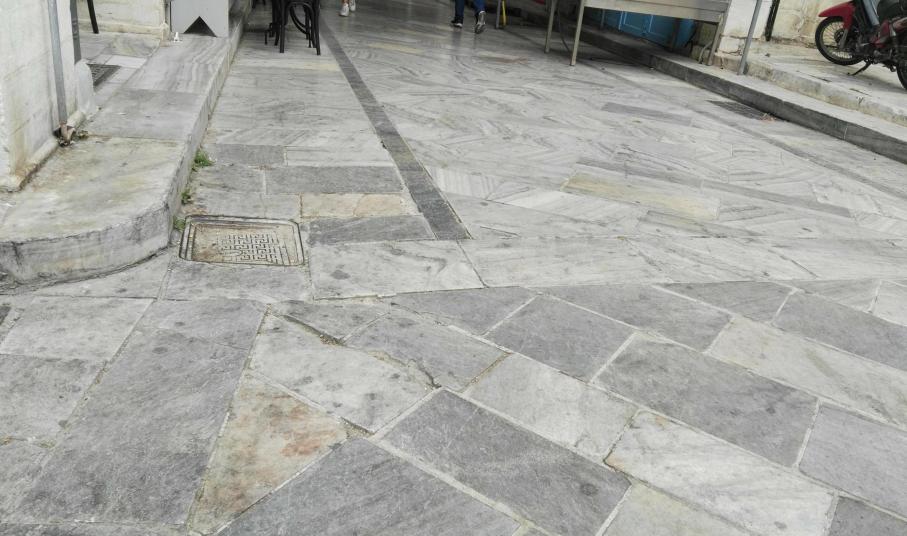 Η καθημερινή διέλευση οχημάτων, δικύκλων, ακόμη όμως και λεωφορείων μοιραία προκαλεί αρκετά προβλήματα στα πλακόστρωτα του ιστορικού κέντρου, τα οποία δείχνουν... πως σε μεγάλα τμήματά τους “διαλύονται”, εξαιτίας της αποκόλλησης πλακών ή μαρμάρων.
