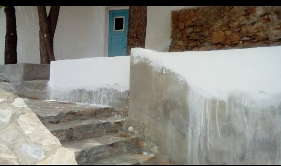 Το σχετικό φωτογραφικό υλικό αποτυπώνει το σύνολο των μικρών παρεμβάσεων συντήρησης που υλοποιούνται αυτές τις ημέρες, με το κτίριο ήδη να έχει πάρει τη δροσερή όψη της καλοκαιρινής περιόδου.