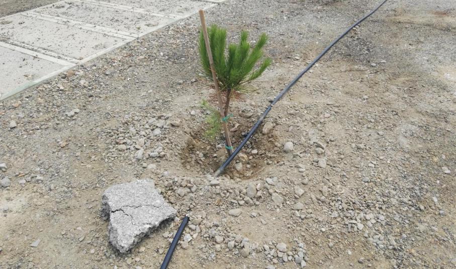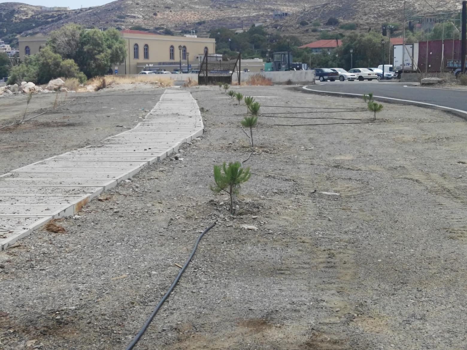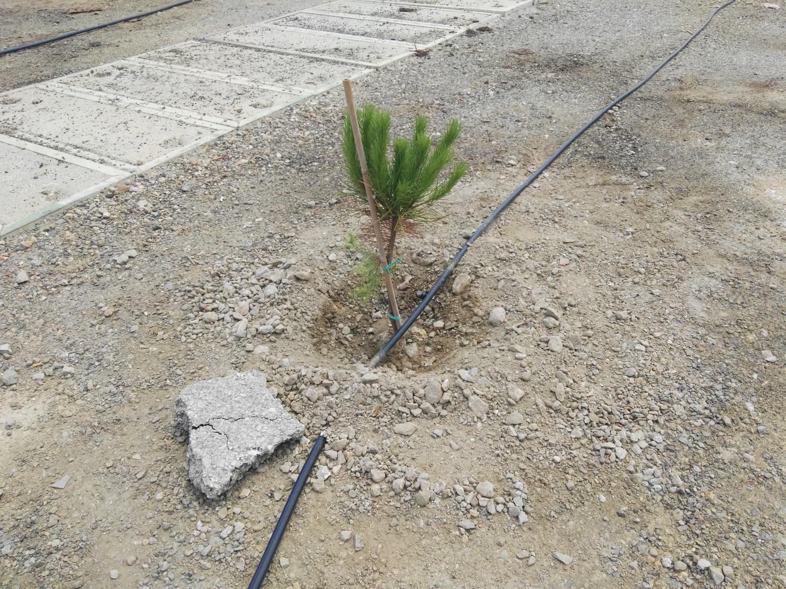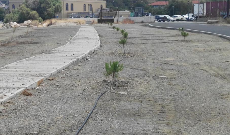 Συγκεκριμένα, κατά μήκος των δύο “γυμνών” λωρίδων του νέου δρόμου που ασφαλτοστρώθηκε προσφάτως, προκειμένου να συνδέσει τους δύο χώρους στάθμευσης στον “Σκλαβενίτη” και το ΑΚΔΕ, φυτεύτηκαν μικρά δέντρα, με σκοπό να αυξηθεί το πράσινο της περιοχής.