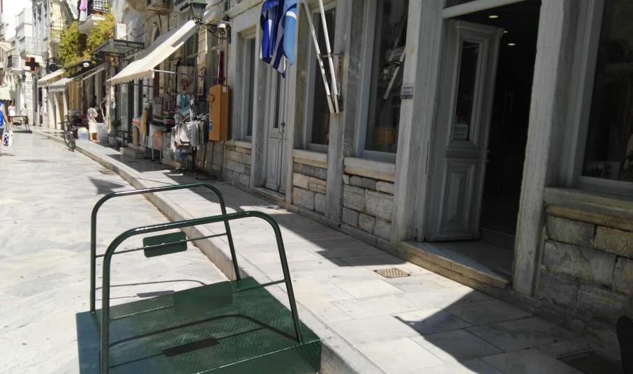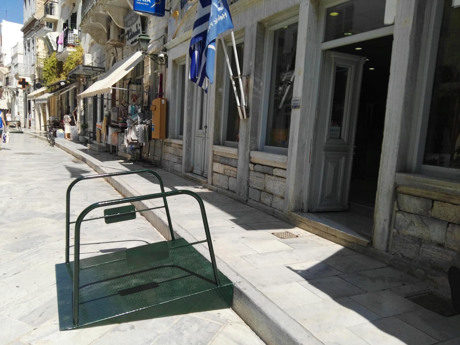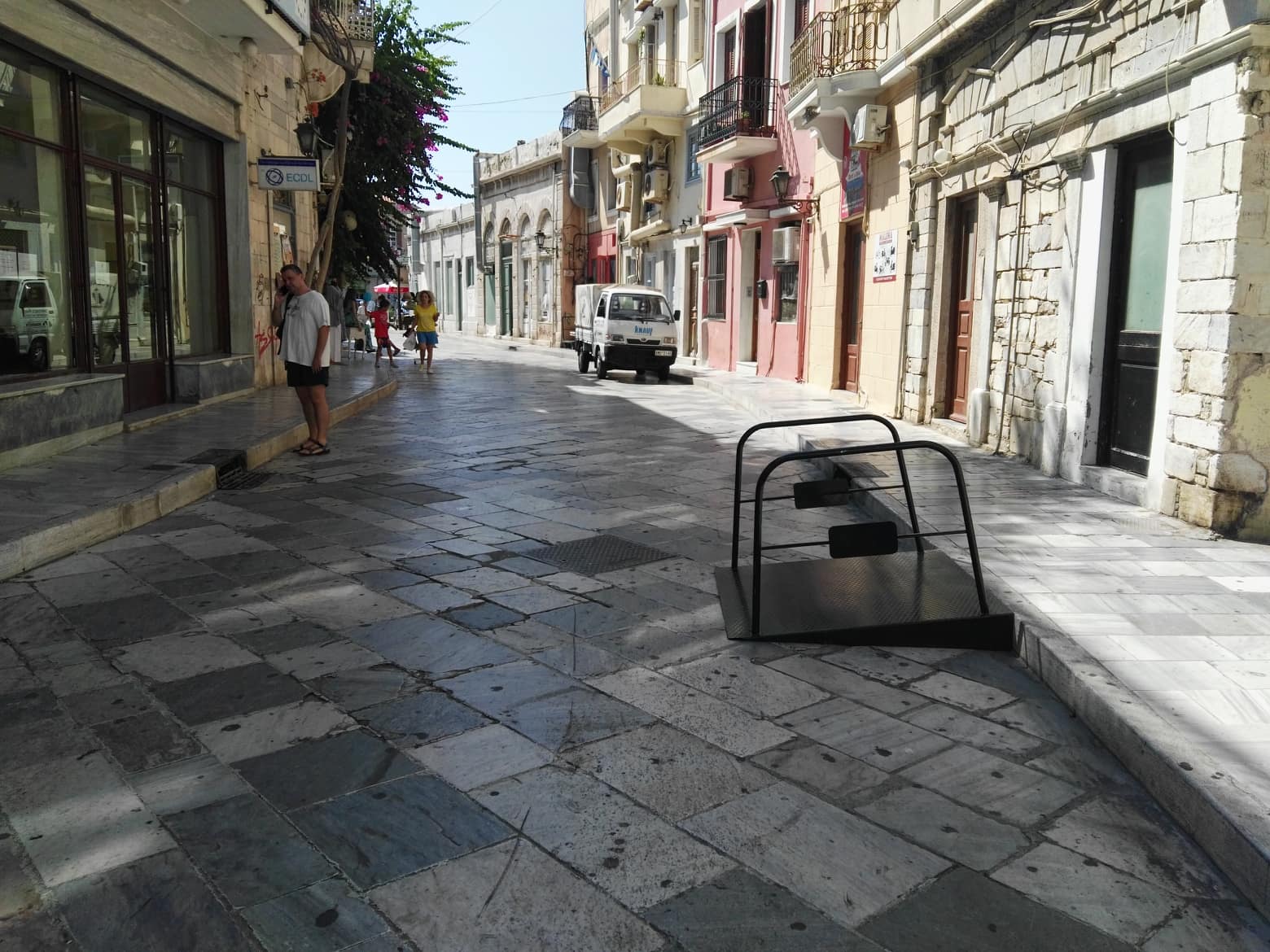 Προσωρινή λύση διευκόλυνσης της μετακίνησης των συνανθρώπων μας με κινητικά προβλήματα επιχειρεί να δώσει ο Δήμος Σύρου – Ερμούπολης, έχοντας τοποθετήσει μεταλλικές ράμπες στον πεζόδρομο του κέντρου.