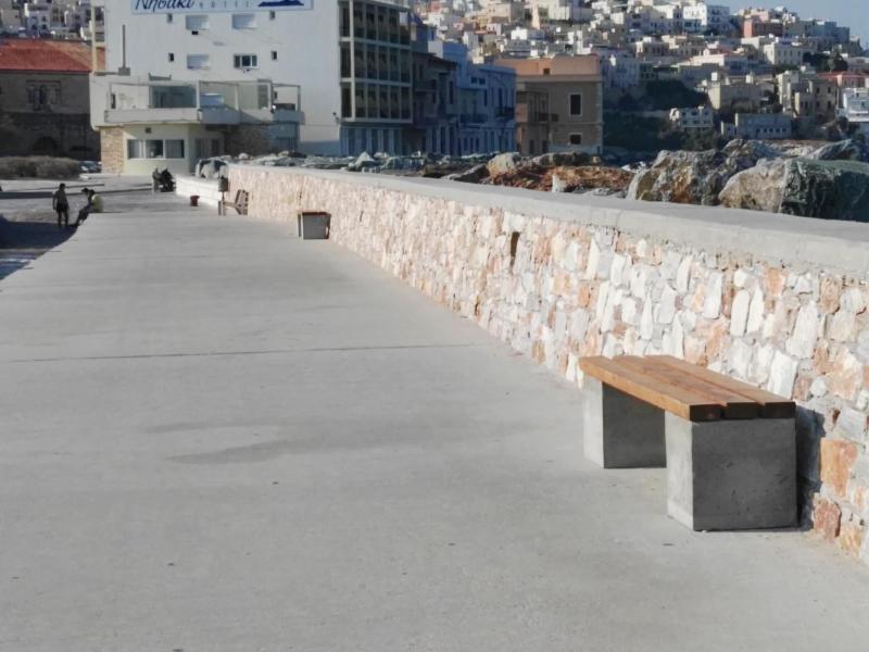 Τη δυνατότητα να ξεκουράζονται και να απολαμβάνουν την όμορφη θέα... της Σύρου και των δύο λόφων της Άνω Σύρου και της Αναστάσεως έχουν πλέον όσοι πραγματοποιούν τον περίπατό τους στο “Νησάκι” και συγκεκριμένα στον προσήνεμο μόλο, αφού τοποθετήθηκαν νέα παγκάκια.
