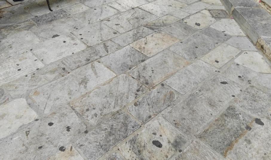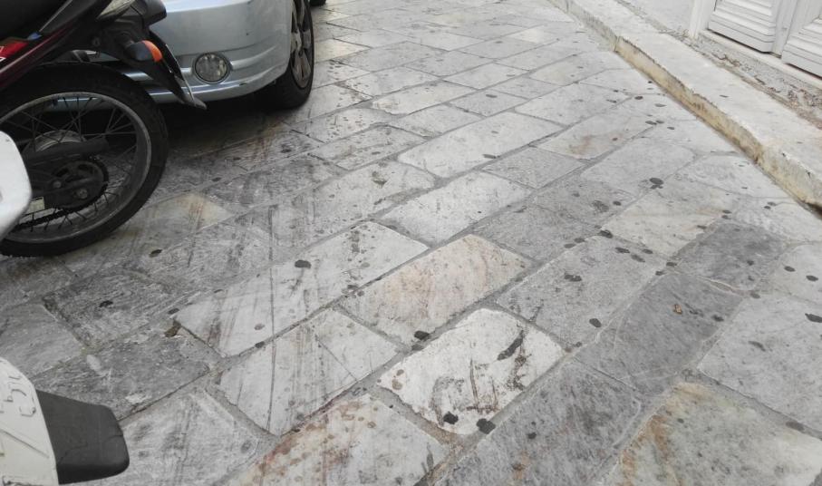 Εντείνεται ολοένα και περισσότερο το πρόβλημα της αποτύπωσης λεκέδων στα πλακόστρωτα της Ερμούπολης και σε τμήματα οδοστρώματος πλησίον κάδων απορριμμάτων, όπου και επιχειρηματίες εστίασης εναποθέτουν τις σακούλες με τα αποφάγια και τα λιπαρά υγρά, καθημερινά.