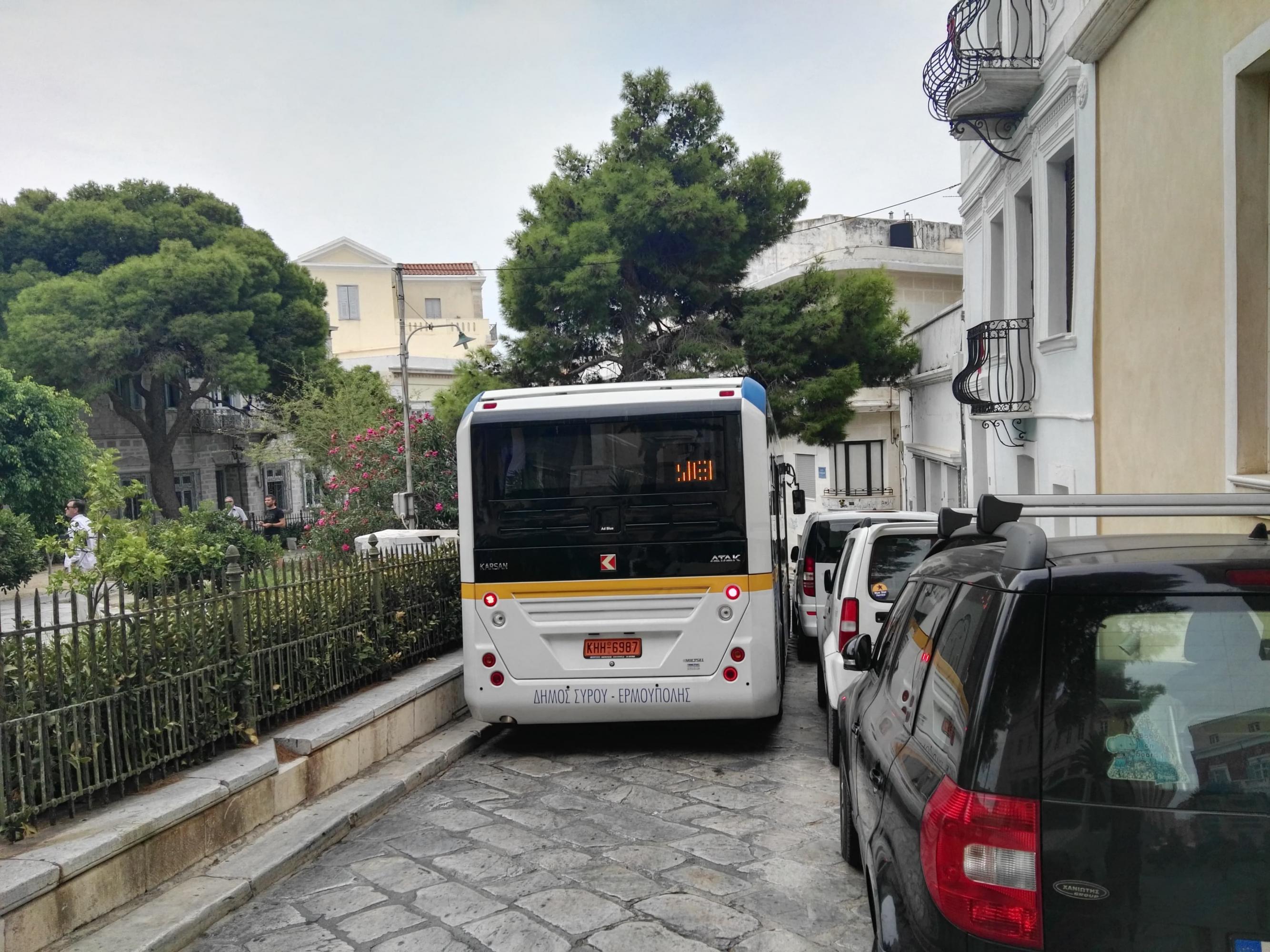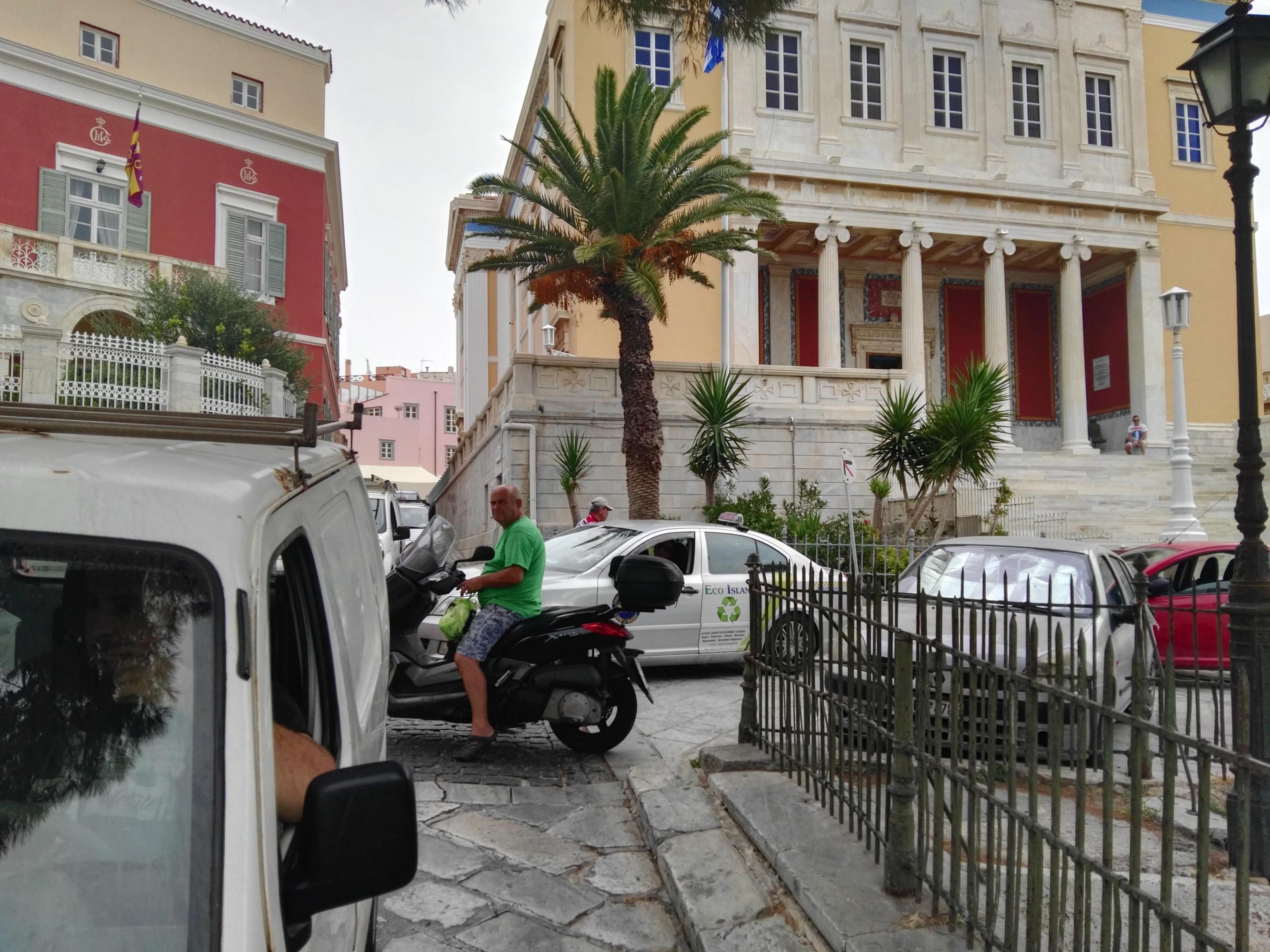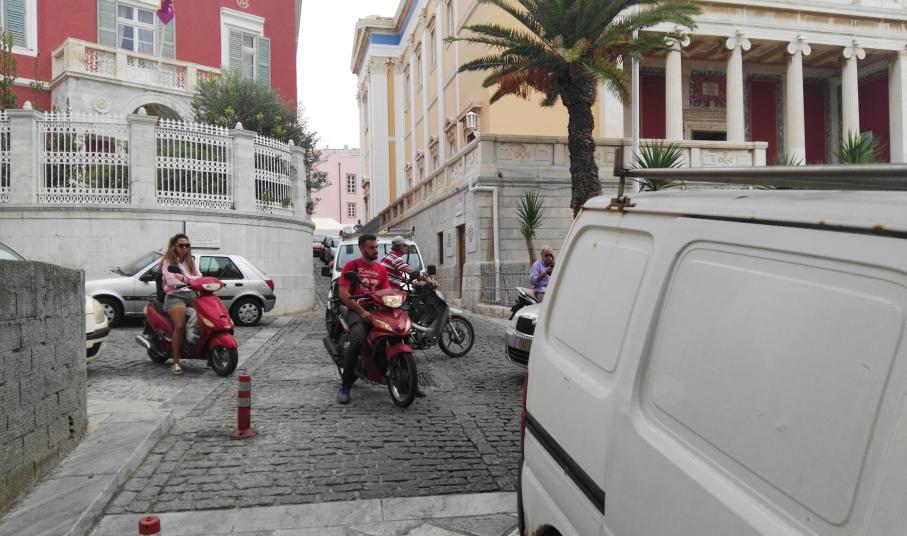 Μεγάλη ταλαιπωρία των οδηγών στην Ερμούπολη από το “πάγωμα” της κυκλοφορίας στο ύψος του Ι.Ν. Αγίου Νικολάου εξαιτίας παράνομης στάθμευσης οχήματος
