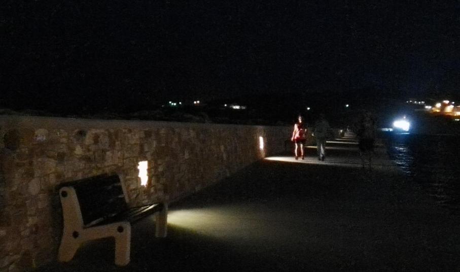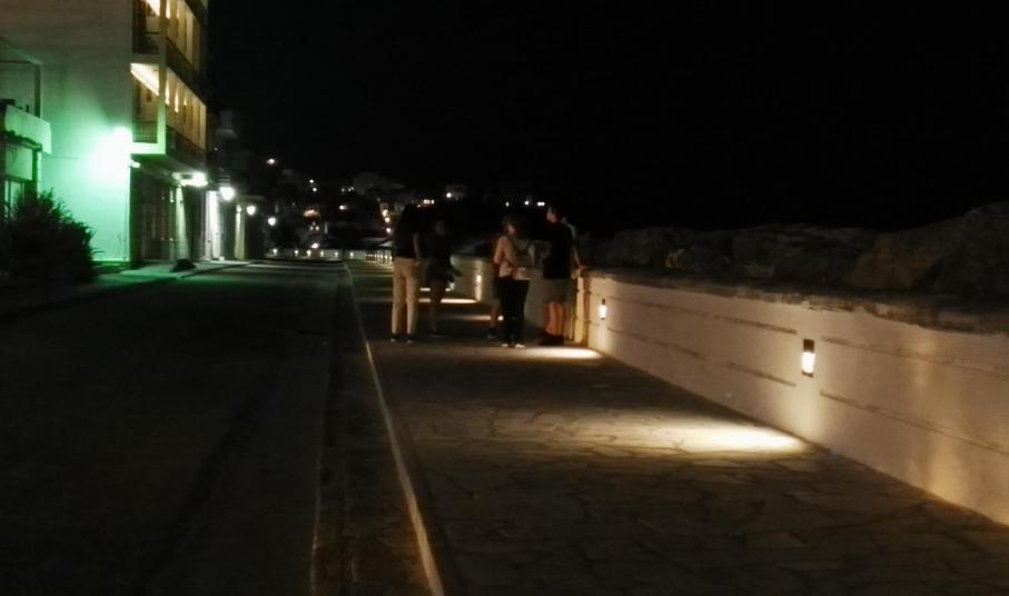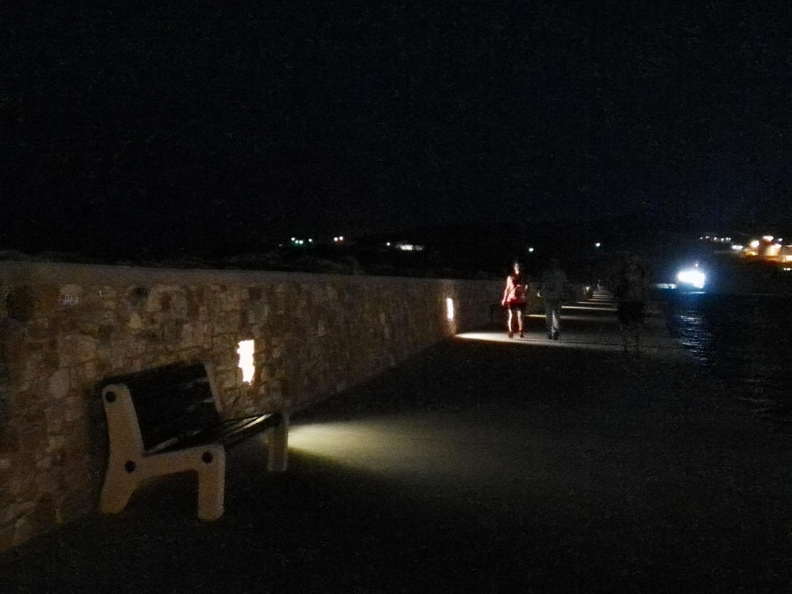 Ελκυστικότερο όσο ποτέ δείχνει το παραλιακό τμήμα της θέσης Νησάκι και κυρίως η “διαδρομή” για τους πεζούς που οδηγεί στον προσήνεμο μόλο, αφού η μέριμνα για τον φωτισμό του σημείου αναβαθμίζει αισθητικά το συγκεκριμένο παραλιακό “κομμάτι”.