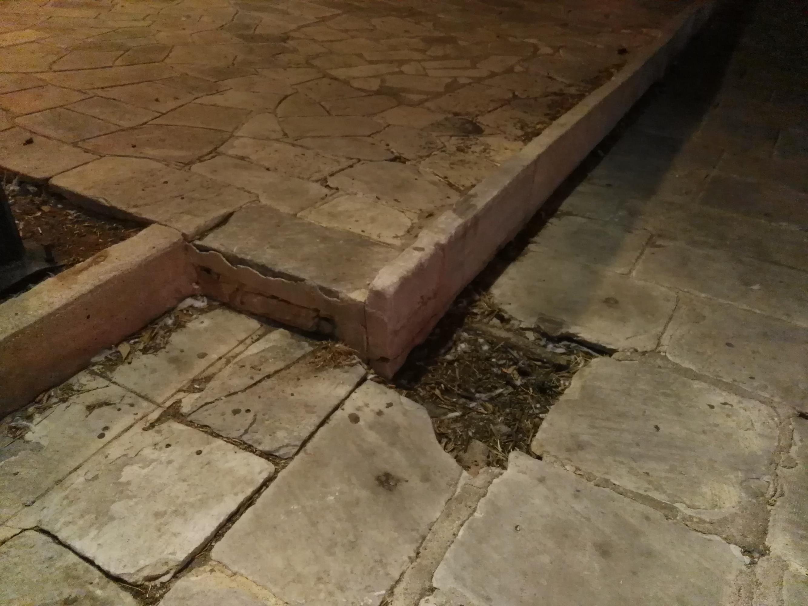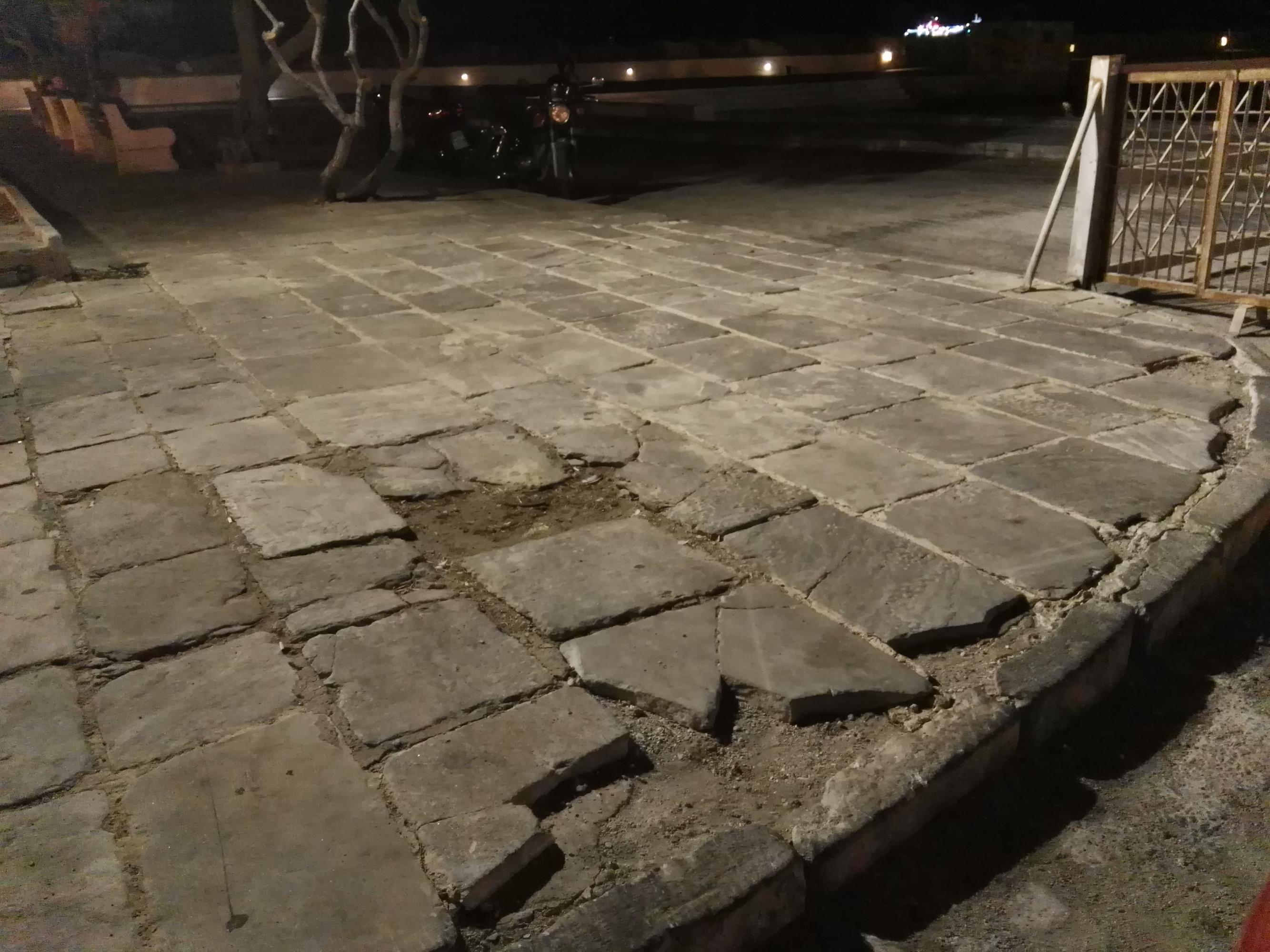 Σπασμένα μάρμαρα, αποκολλημένα τμήματα πεζοδρομίων και μικρά σημεία φύτευσης χωρίς φροντίδα, επισημαίνουν ως σύνολο τη γενικότερη μέριμνα που πρέπει να υπάρξει στο συγκεκριμένο τμήμα της θέση Νησάκι.