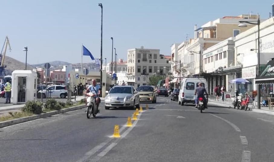 Τοποθέτηση ειδικών εύκαμπτων κολωνακίων στην παραλιακή ζώνη Ερμούπολης στο ύψος του “kiss and ride”