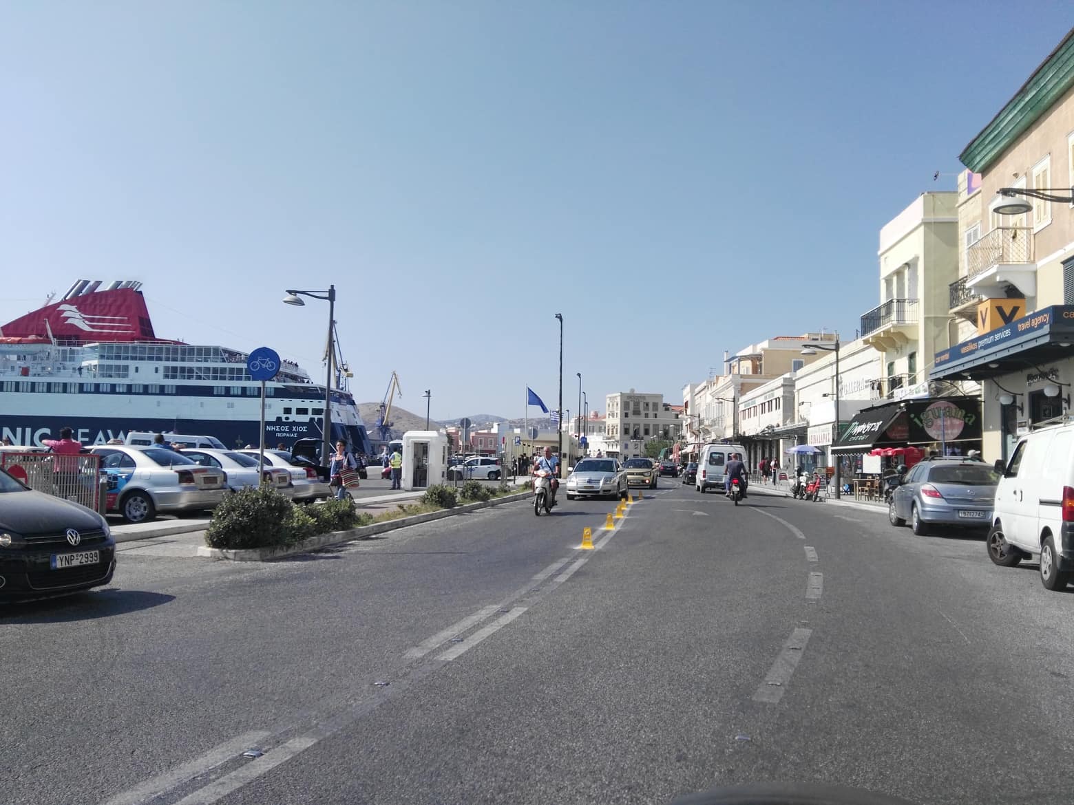 Σημειώνεται πως, τα πλαστικά μικρά εμπόδια... τοποθετήθηκαν κατά μήκος του οδοστρώματος στο ύψος του kiss and ride και μάλιστα επί της διπλής διαχωριστικής γραμμής ώστε να μην μπορούν να σταθμεύουν παράνομα οι οδηγοί και να εξυπηρετείται απρόσκοπτα η ροή οχημάτων, δικύκλων, μικρών φορτηγών, mini bus αλλά κι επιβατών των πλοίων.