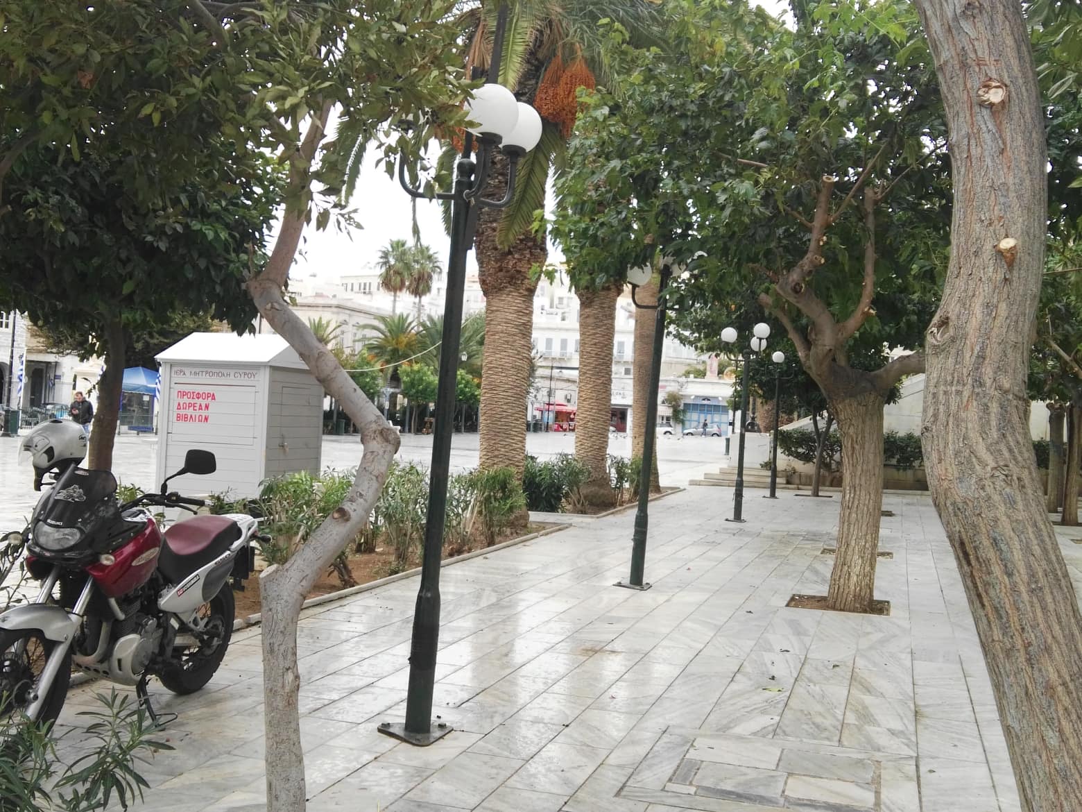 Ενδεικτικά, αξίζει να αναφερθεί η πλατεία Μιαούλη και μάλιστα τα τμήματα που “πλαισιώνουν” την κεντρική κλίμακα, που αποτελούν δύο μικρά κηπάρια.