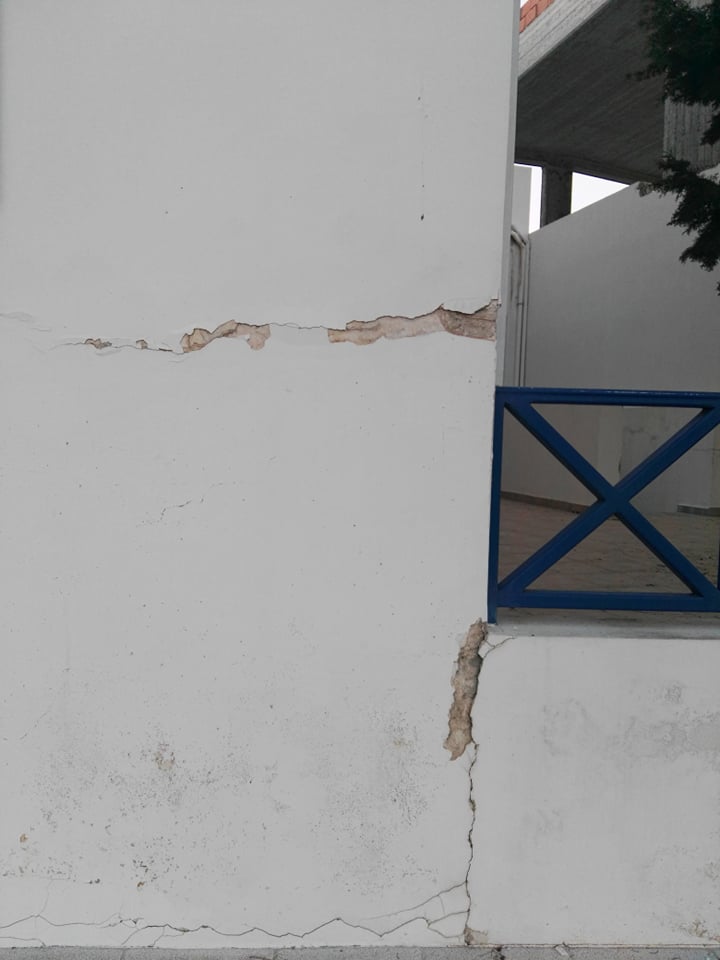 Συγκεκριμένα, τονίζεται η ανάγκη αποκατάστασης των επιχρισμάτων του εν λόγω κτιρίου, καθώς έχουν καταγραφεί φθορές σε διάφορα τμήματα των επιφανειών του, ενώ παρατηρείται αποχρωματισμός αλλά και αποκόλληση σοβάδων σε ορισμένα σημεία.