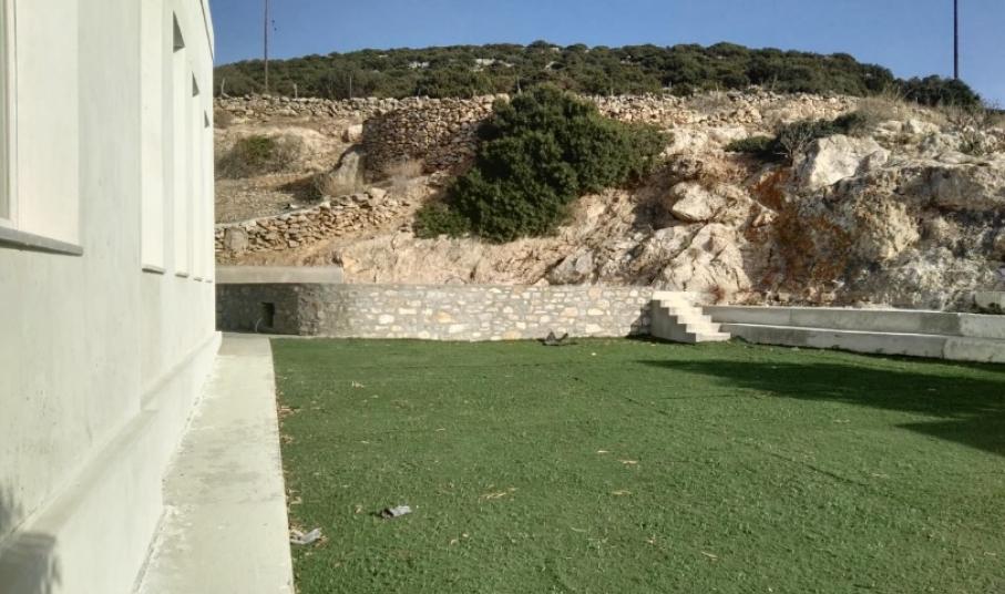 Η τοποθέτηση τάπητα που αξιοποιήθηκε από τμήματα εκείνου που αφαιρέθηκαν από το γήπεδο της ΕΠΣ Κυκλάδων αναβάθμισε αισθητικά τον χώρο, στον οποίο επίσης διαμορφώθηκε μία μικρή εξέδρα ενώ αποκαταστάθηκαν και οι μικρές κερκίδες για τους επισκέπτες.