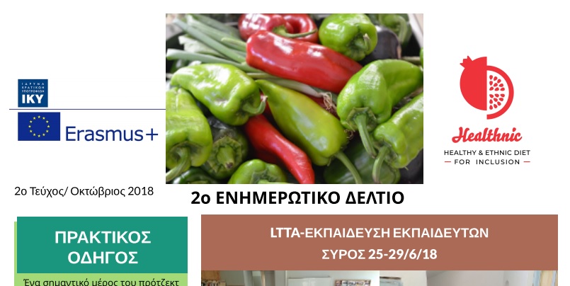 Το Erasmus+ πρότζεκτ “HEALTHNIC: Healthy and ethnic diet for inclusion”  έκλεισε ένα χρόνο δημιουργίας και δράσεων. Διαβάστε το 2ο ενημερωτικό δελτίο και ενημερωθείτε για την έκδοση του Πρακτικού Οδηγού καθώς και για τα εργαστήρια που αυτήν τη στιγμή διοργανώνονται σε διάφορα μέρη της Ευρώπης. Συντονίστρια του πρότζεκτ είναι η Βαρδάκειος Σχολή Ερμούπολης η οποία και διοργανώνει ένα τοπικό Healthnic εργαστήριο με  μια διαπολιτισμική ομάδα 15 ατόμων, τα οποία μέσω της συμμετοχικής μάθησης αποκτούν γνώσεις στη μαγειρική, την υγιεινή διατροφή, την οικιακή οικονομία αλλά και τις νέες τεχνολογίες.