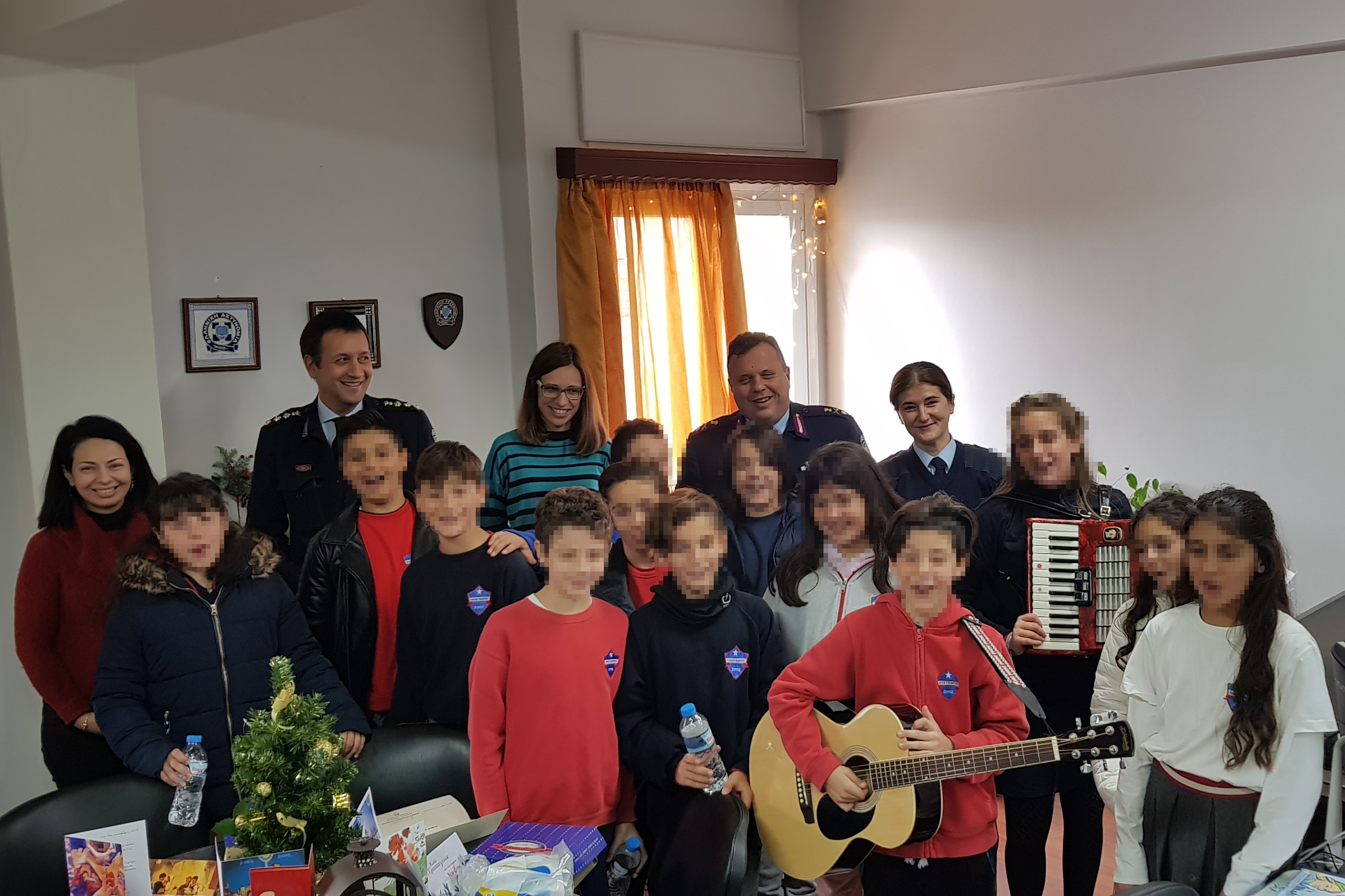 Πιο συγκεκριμένα, τα παιδιά της ΣΤ’ τάξης του δημοτικού σχολείου «Ο Άγιος Γεώργιος» τραγούδησαν τα παραδοσιακά κάλαντα στον Γενικό Περιφερειακό Αστυνομικό Διευθυντή Ταξίαρχο Γεώργιο ΓΕΩΡΓΑΚΑΚΟ και στο προσωπικό του Επιτελείου της Γενικής Περιφερειακής Αστυνομικής Διεύθυνσης Νοτίου Αιγαίου.