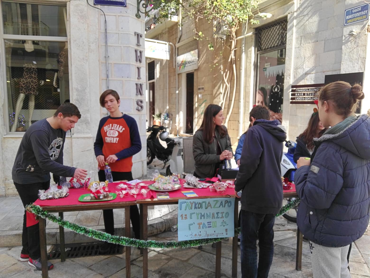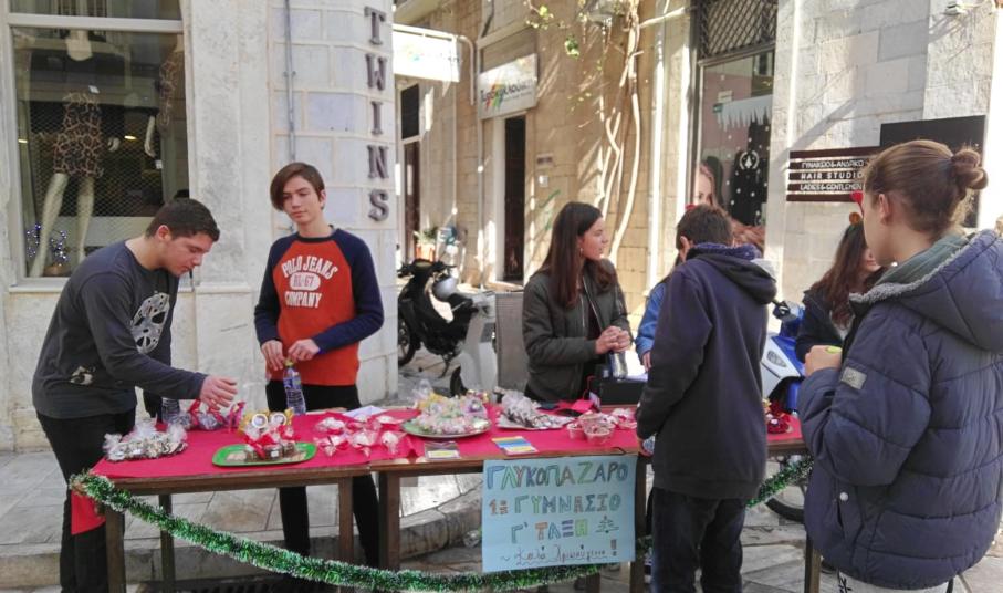 Καθ΄ όλη τη διάρκεια του τελευταίου διημέρου μαθητές από τα Γυμνάσια της Σύρου πρόσφεραν τα διάφορα χειροποίητα γλυκίσματα που ετοίμασαν από το σπίτι τους, ενώ διαθέτουν και μικρά δωράκια προς κάθε πολίτη που πραγματοποιεί τις αγορές του στις εμπορικές οδούς.