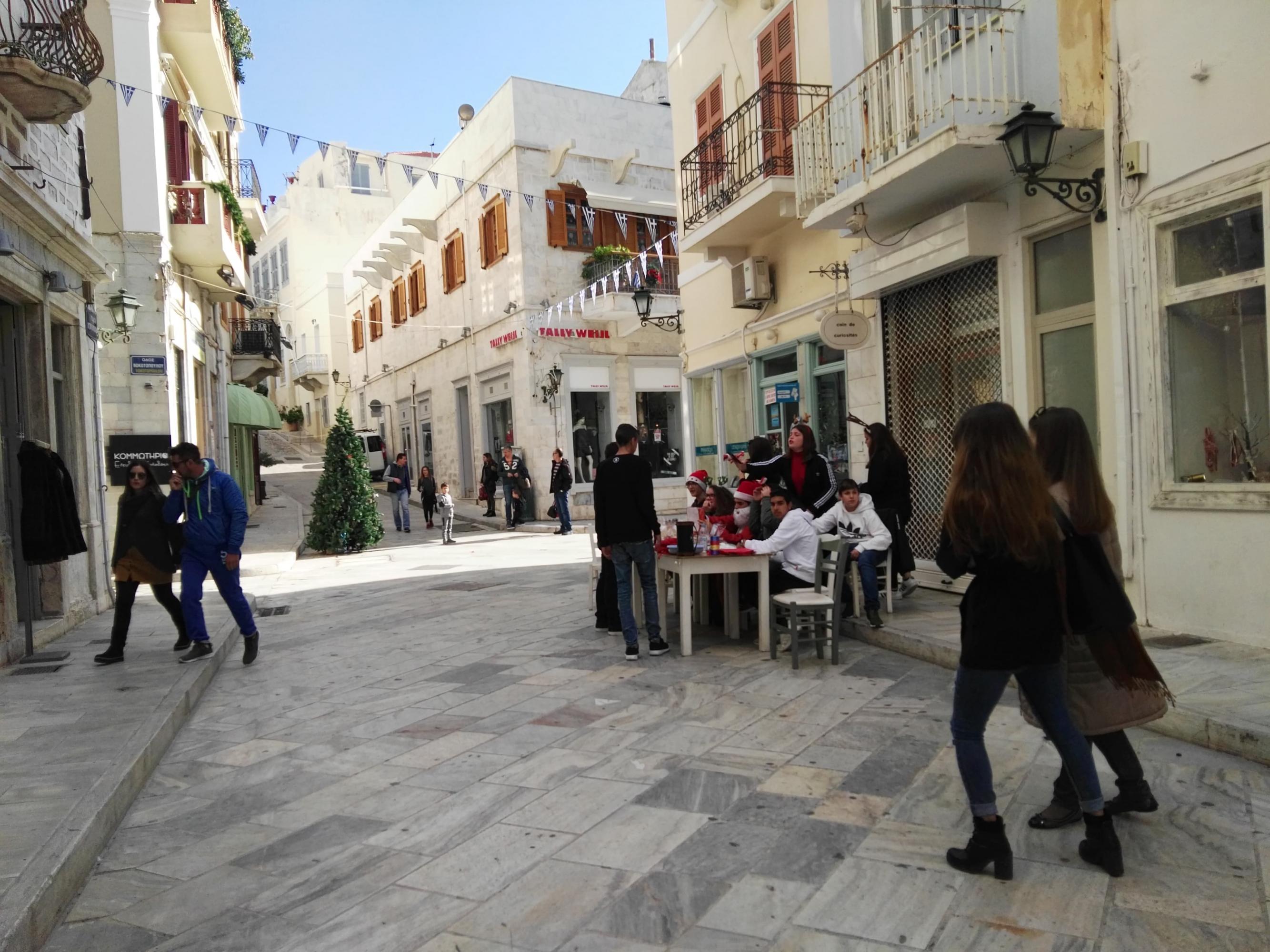 Με τα γιορτινά χαμόγελά τους στολίζουν το κέντρο της Ερμούπολης οι μαθητές των Σχολείων, οι οποίοι έστησαν και φέτος τους χριστουγεννιάτικους πάγκους τους, προσφέροντας όμορφα δωράκια και νόστιμα γλυκίσματα στους πολίτες του νησιού.