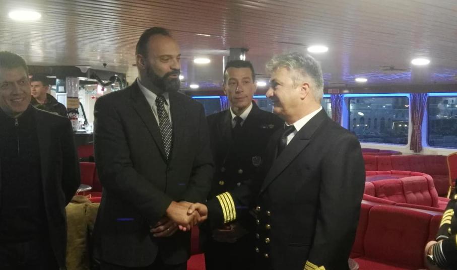 Λιτή εκδήλωση στο πλοίο το απόγευμα του Σαββάτου με αφορμή την πρώτη είσοδο στο λιμάνι της Ερμούπολης μετά την υποδοχή του 2019