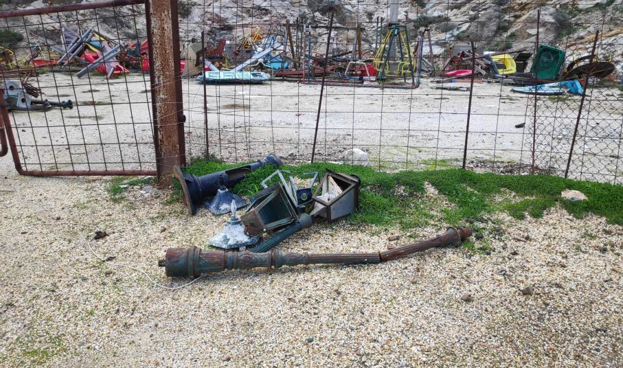 Εκτός από τα παιχνίδια που αφαιρέθηκαν από τους χώρους των παιδικών χαρών από όλο το νησί της Σύρου προ ετών, σήμερα, στο συγκεκριμένο μέρος έχουν μεταφερθεί και παλαιοί στύλοι φωτισμού που αφαιρέθηκαν από τον χώρο της πλατείας Μιαούλη, προκειμένου να τοποθετηθούν καινούργιοι.