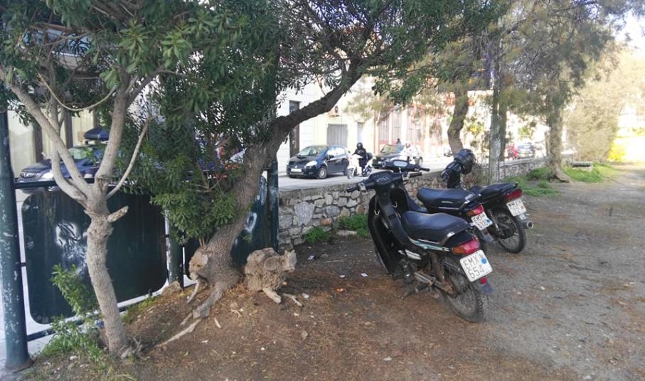 Εμφανώς παραμελημένο παραμένει το μικρό κηπάριο στη θέση Καρνάγιο, πλησίον του χώρου στάθμευσης του Λιμενικού Ταμείου Σύρου, το οποίο αφέθηκε να μετατραπεί σε parking μηχανών, κάτι που διαπιστώνεται σε καθημερινή βάση.