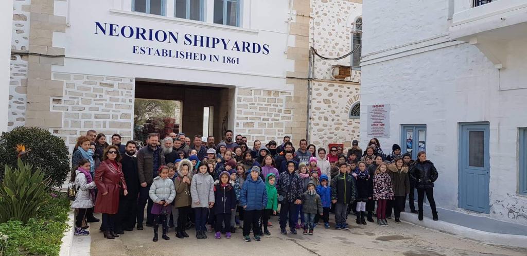 Επίσκεψη στα Ναυπηγεία Νεωρίου Σύρου πραγματοποίησαν μαθητές από τα Κατηχητικά Σχολεία της Ιεράς Μητρόπολεως Σύρου, την Κυριακή 17 Φεβρουαρίου 2019, συνοδευόμενοι από τον Αρχιμανδρίτη Νικόλαο Γαβαλλά, τον πατέρα Κωνσταντίνο Κοντό και τους γονείς τους.