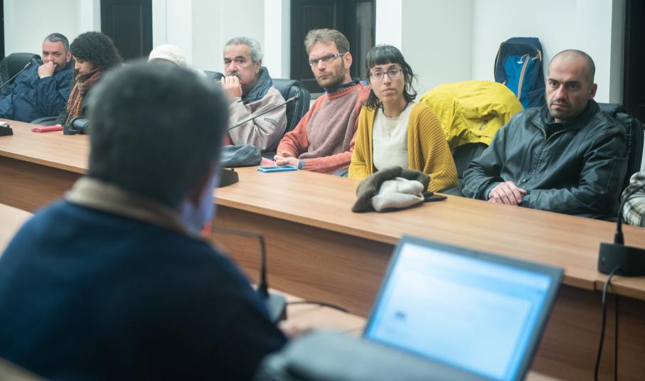 Με μεγάλο ενδιαφέρον οι παρευρισκόμενοι άκουσαν τις τοποθετήσεις του παπά Γιάννη και του Ιάσωνα από τον συντονισμό του αγώνα κατά των βΑΠΕ στο Ρέθυμνο, οι οποίοι μίλησαν μέσω τηλεδιάσκεψης και απάντησαν σε πολλά ερωτήματα.