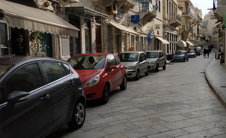 Άκρως απογοητευτική είναι η καθημερινή πρωινή εικόνα του πεζόδρομου της οδού Πρωτοπαπαδάκη στο κέντρο της Ερμούπολης, η οποία μετατρέπεται σε χώρο στάθμευσης για οχήματα, με αποτέλεσμα να υποβαθμίζεται συστηματικά η προσπάθεια που καταβάλλεται από την επιχειρηματική κι εμπορική πλευρά ώστε να αναβαθμιστεί συνολικά ο εμπορικός δρόμος.