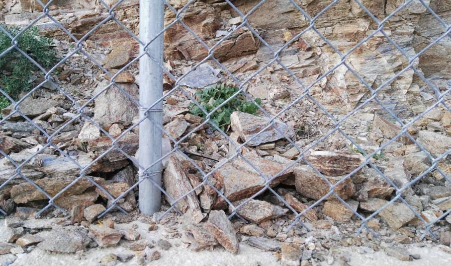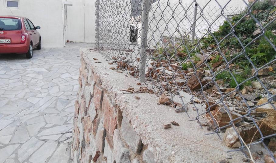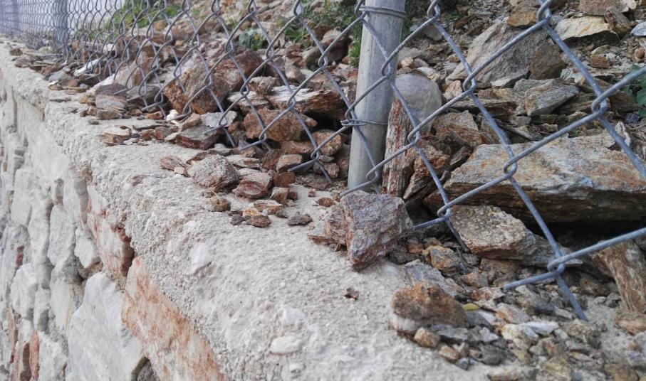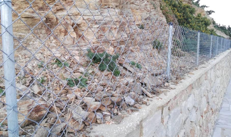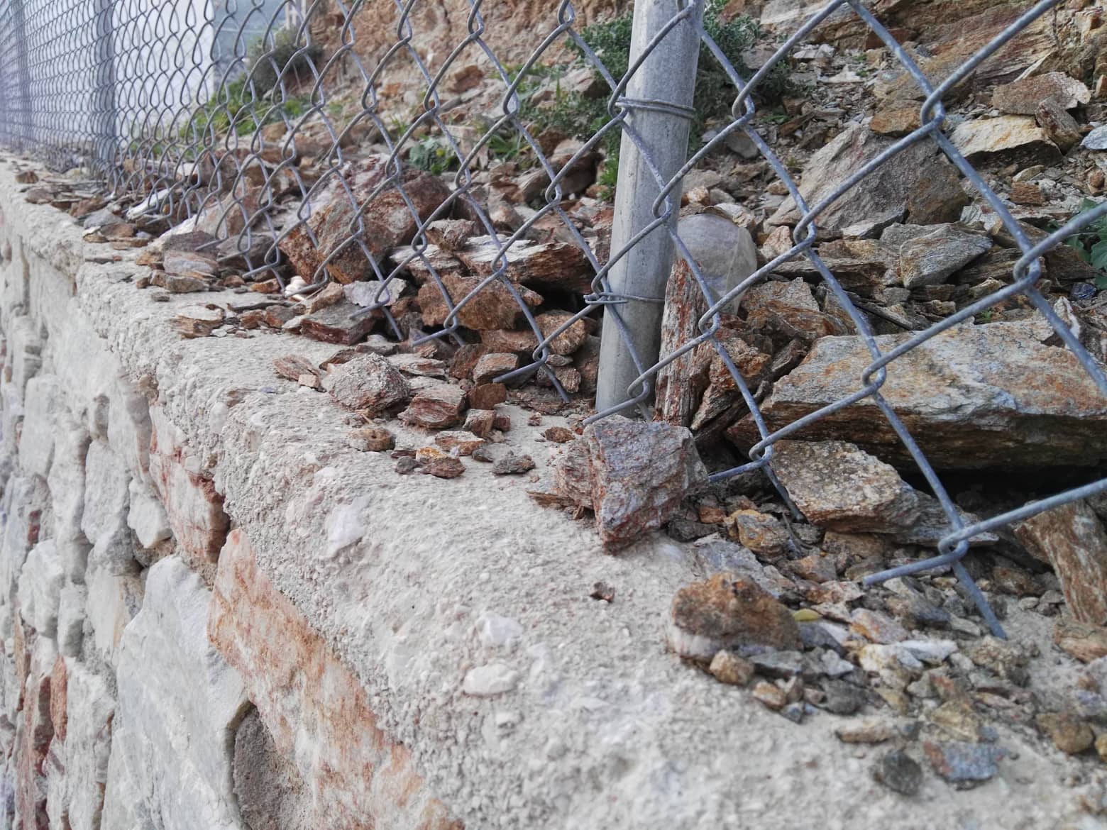 Αξίζει να υπενθυμιστεί ότι προ μηνών η Τεχνική Υπηρεσία είχε τοποθετήσει μικρό συρματόπλεγμα με πασσάλους κατά μήκους του “επικίνδυνου” σημείου, ώστε να συγκρατούνται οι πέτρες και να μην φθάνουν στον προαύλιο χώρο, μέτρο που φαίνεται σήμερα να μην επαρκεί για την αποφυγή όποιου ατυχήματος.
