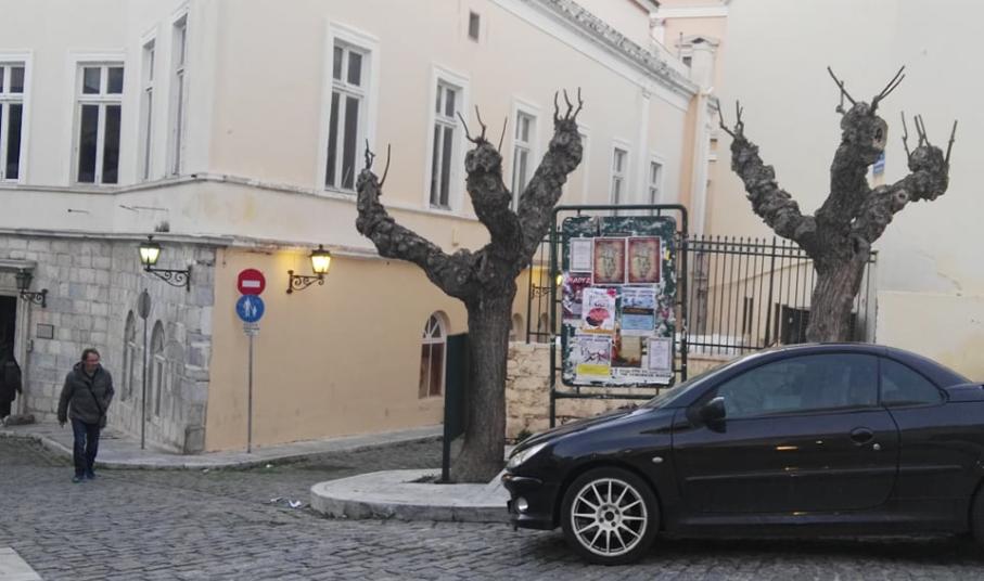 Η φροντισμένη εικόνα του συγκεκριμένου χώρου αμέσως μετά τις προγραμματισμένες αποψιλώσεις και τα κλαδέματα, βοηθούν στην ανάδειξη του συνολικότερου φόντου που αποτελούν τα νεοκλασικά κτίρια, όπως παρομοίως και οι εργασίες κλαδέματος στα δέντρα απέναντι από το θέατρο “Απόλλων”.