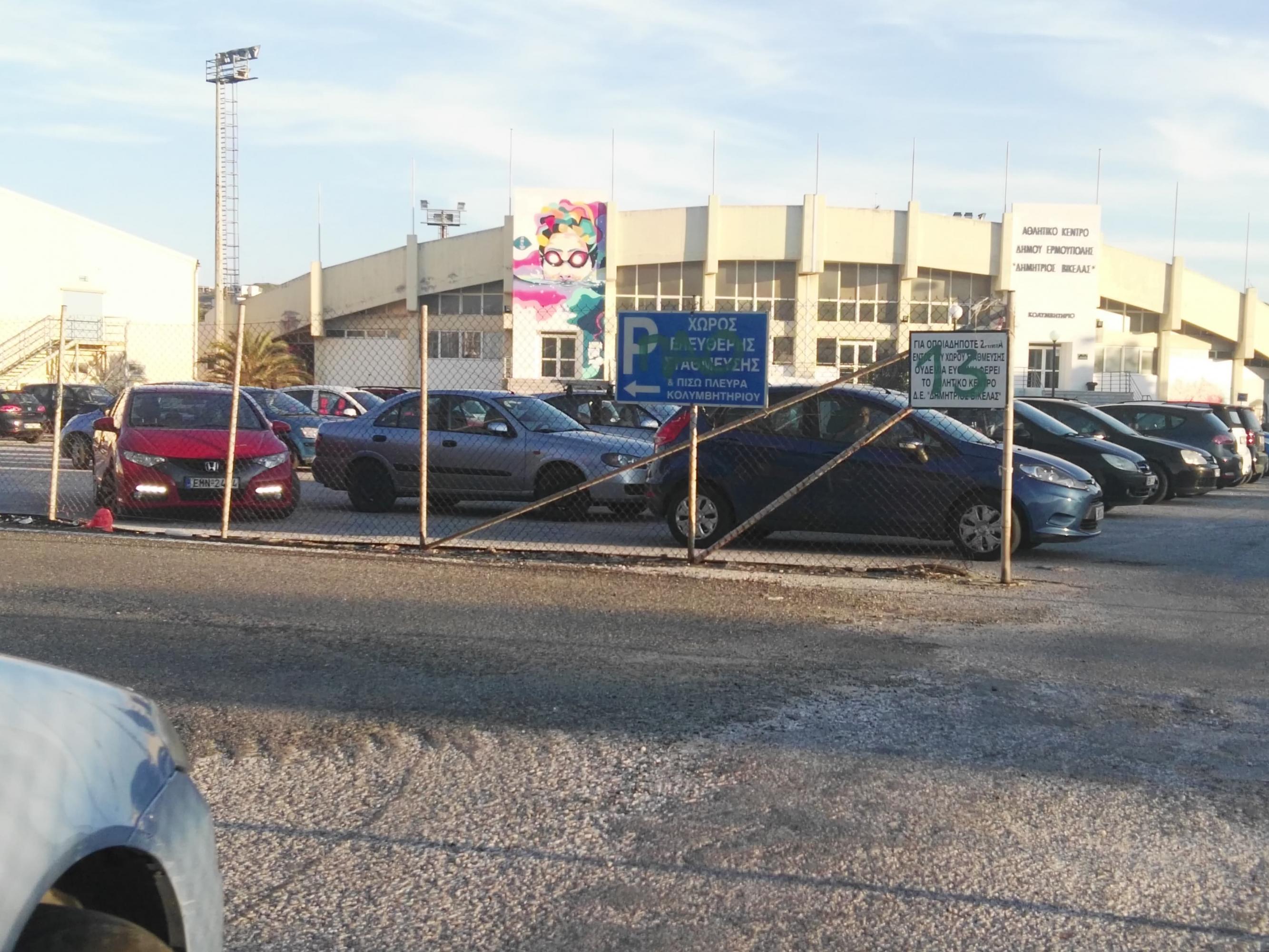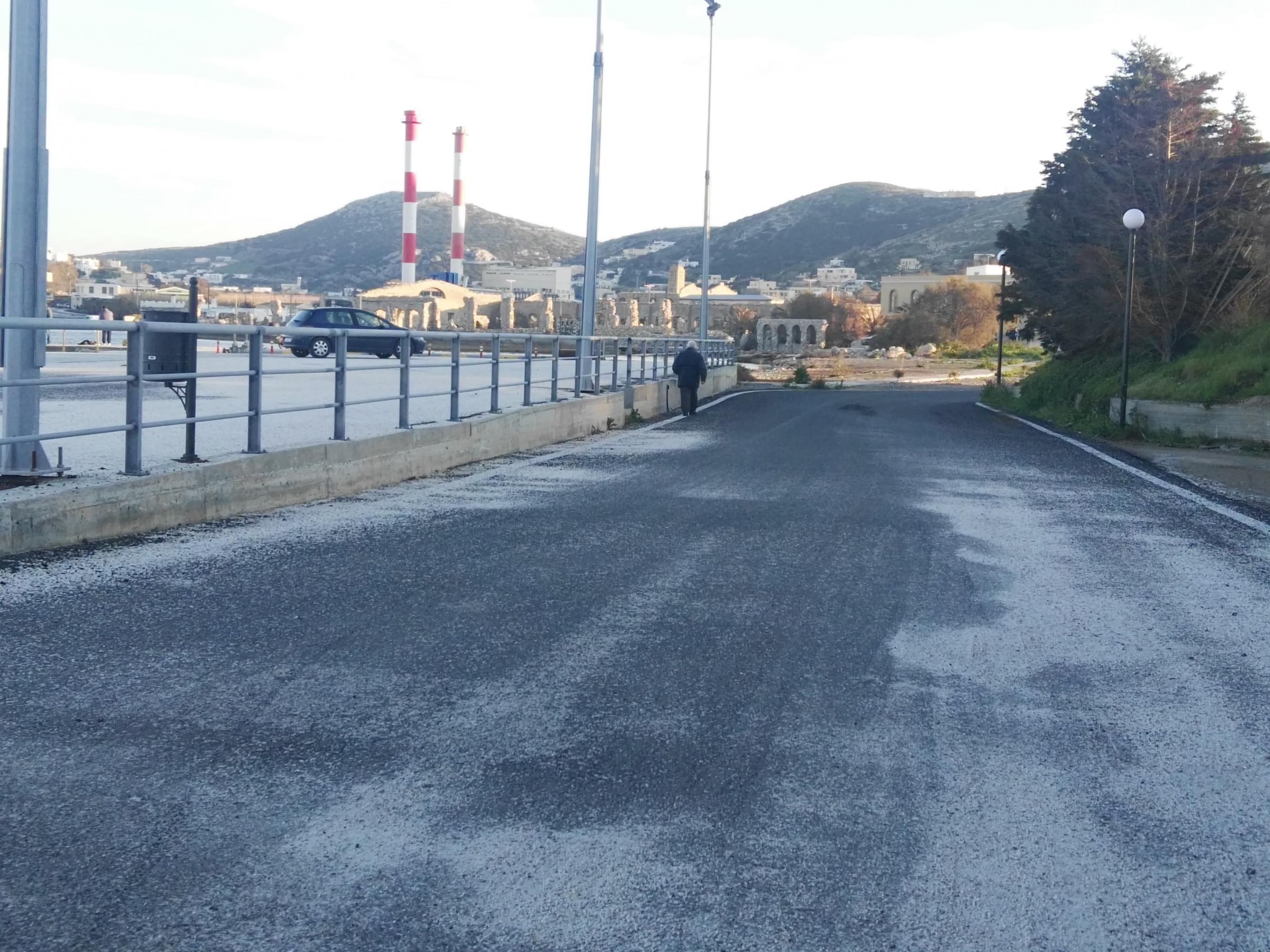 Χωρίς αποκατάσταση παραμένει τμήμα του δρόμου που εξυπηρετεί τους οδηγούς που μετακινούνται στο Αθλητικό Κέντρο Ερμούπολης ή και μεταβαίνουν μέσω της θέσης ΜΕΤΚΑ στο parking δίπλα στη λαϊκή αγορά.
