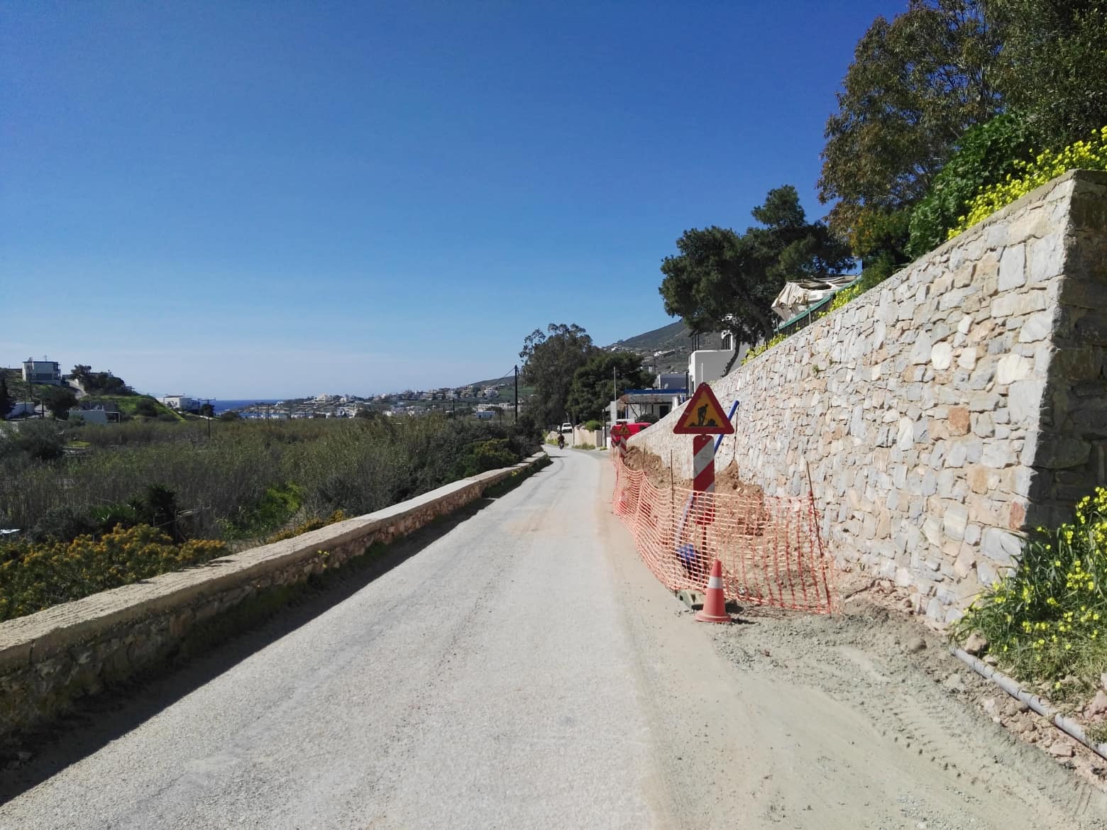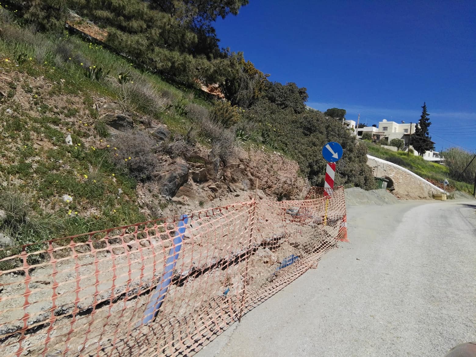 Συγκεκριμένα, η πρόοδος των εργασιών προχωρά κατά μήκος του δρόμου που συνδέει τη συμβολή Ποσειδωνίας – Βήσσα με τον κεντρικό δρόμο του Φοίνικα, όπου και έχουν τοποθετηθεί σήματα που δηλώνουν πως εκτελούνται παρεμβάσεις, κώνοι αλλά και πλαστική περίφραξη στα τμήματα που έχουν σκαφτεί, τα οποία όμως δεν εξυπηρετούν την ενημέρωση και την ασφαλή διέλευση των πολιτών.