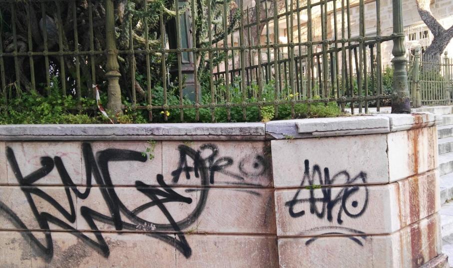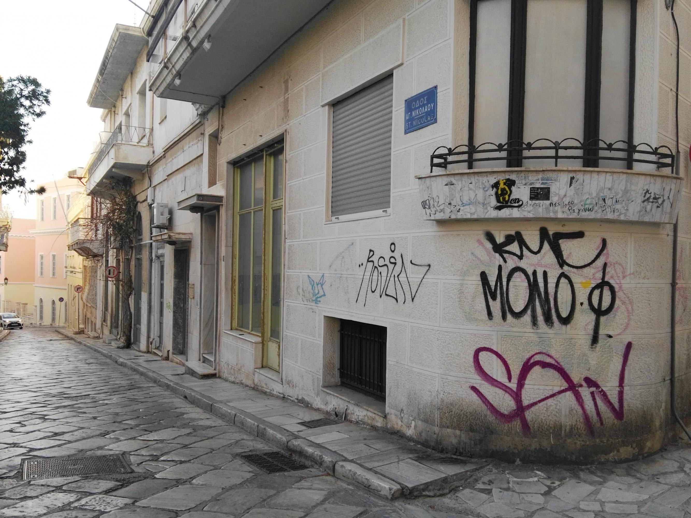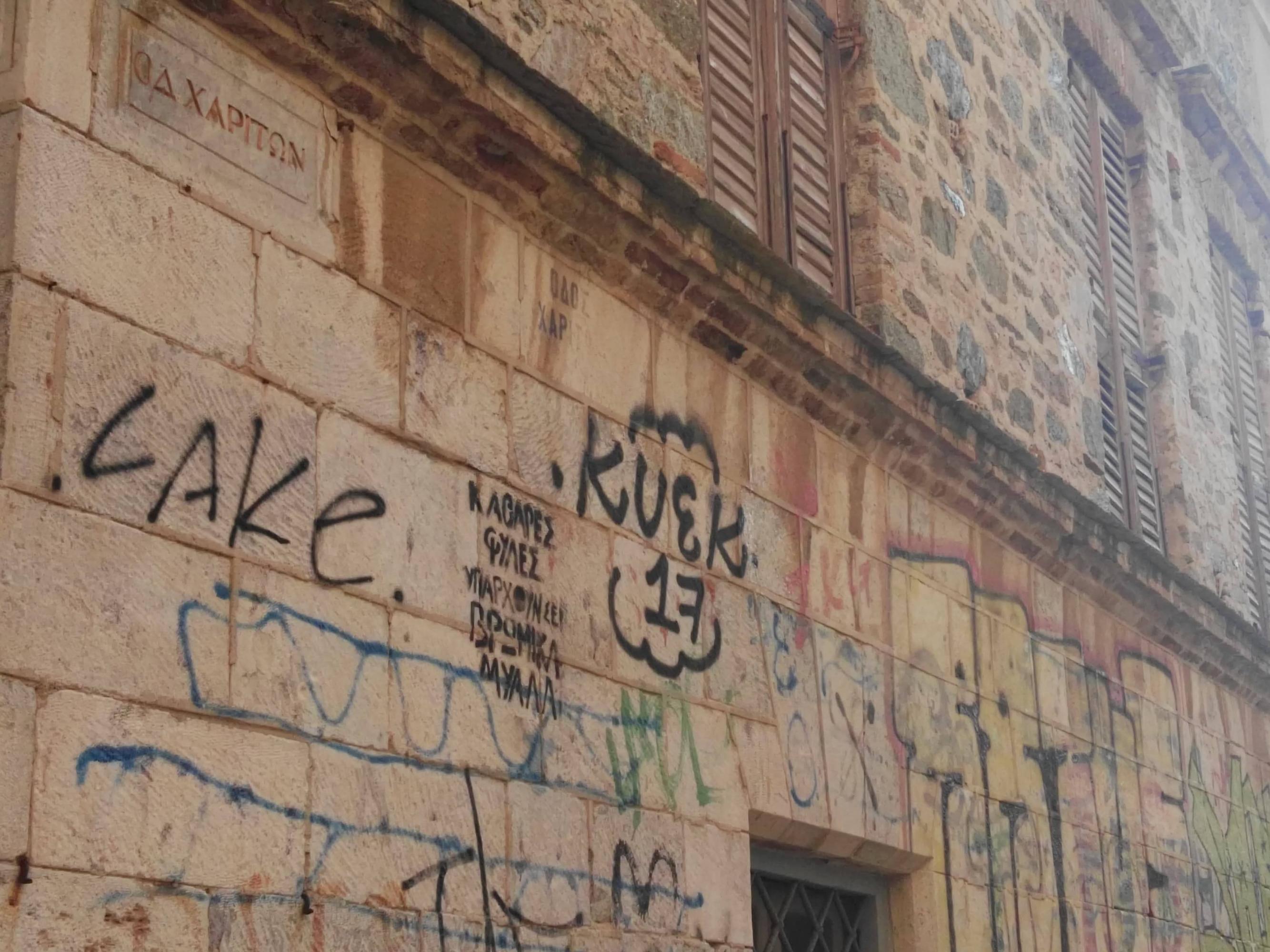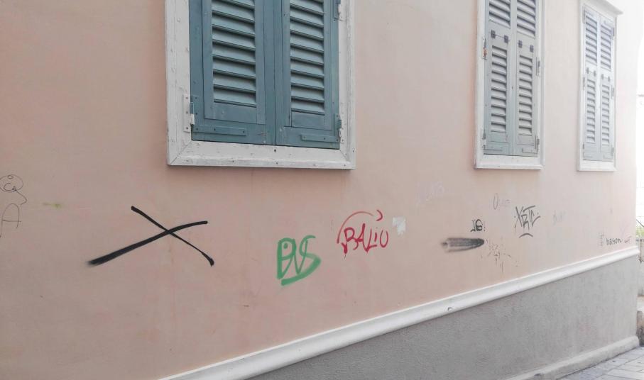 Επιφάνειες ιδιωτικών και δημόσιων κτιρίων “πληγώνονται” από βωμολοχίες και ανούσια συνθήματα στην περιοχή του Αγ. Νικολάου