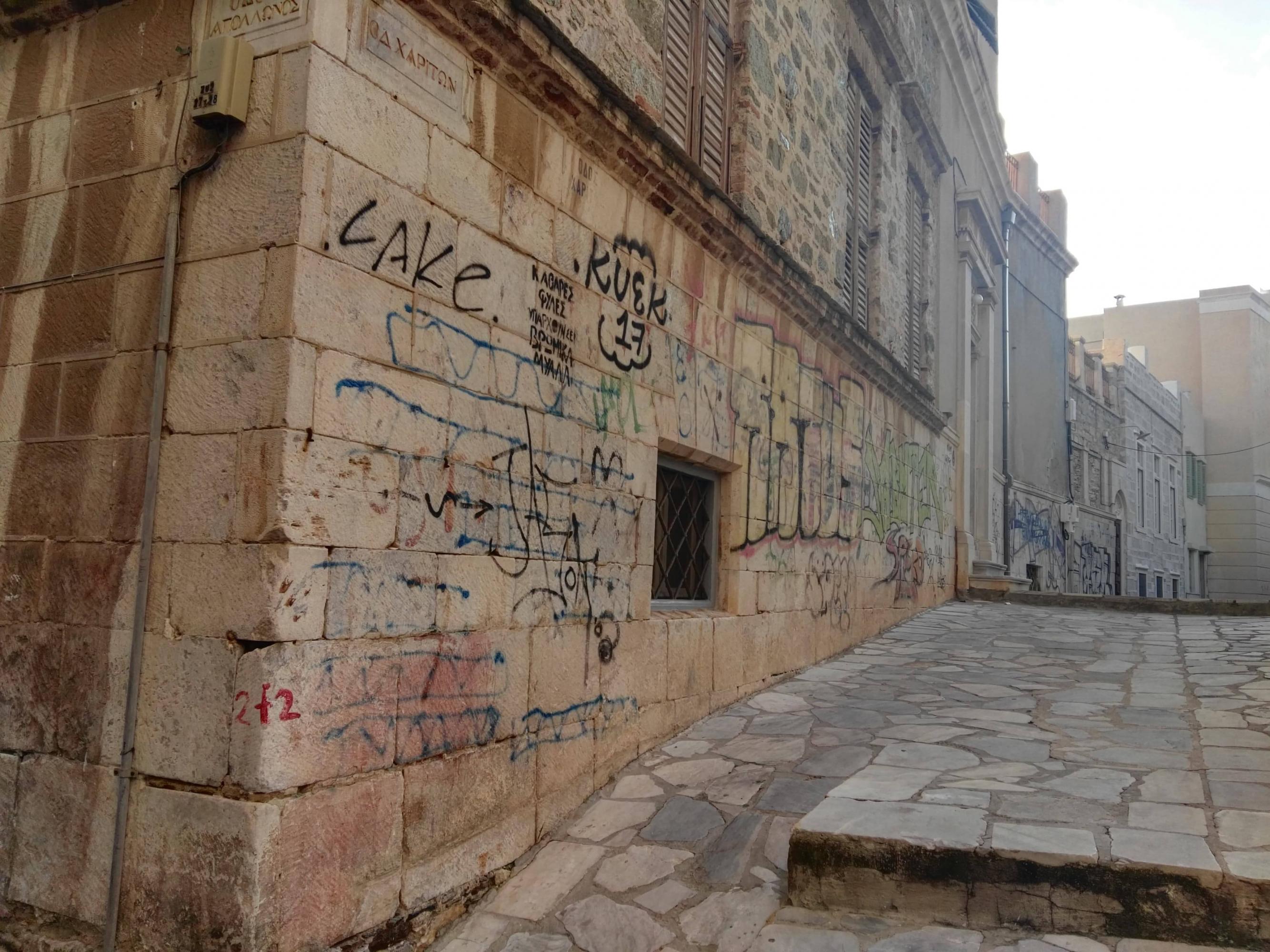 Αγνοώντας πλήρως την έννοια του σεβασμού προς την ιστορία της πόλης και απέχοντας μίλια μακριά από την πολιτισμένη στάση, η οποία υπαγορεύει τον σεβασμό στην περιουσία του κάθε πολίτη, άγνωστοι προχώρησαν σε αναγραφή ανούσιων ή και προσβλητικών συνθημάτων για τον κοινό και λογικό νου σε διάφορες επιφάνειες κτιρίων.