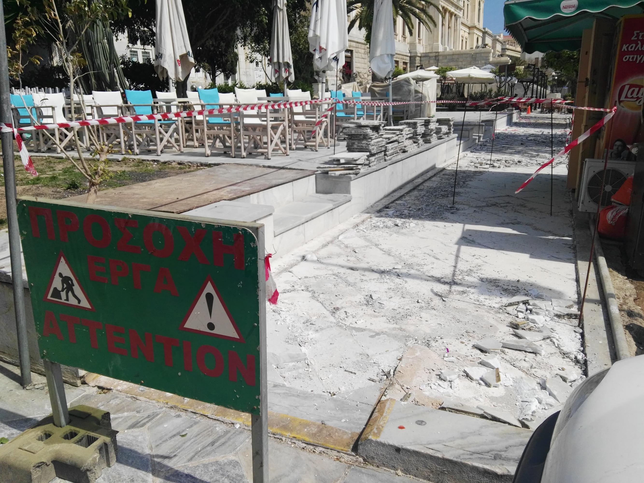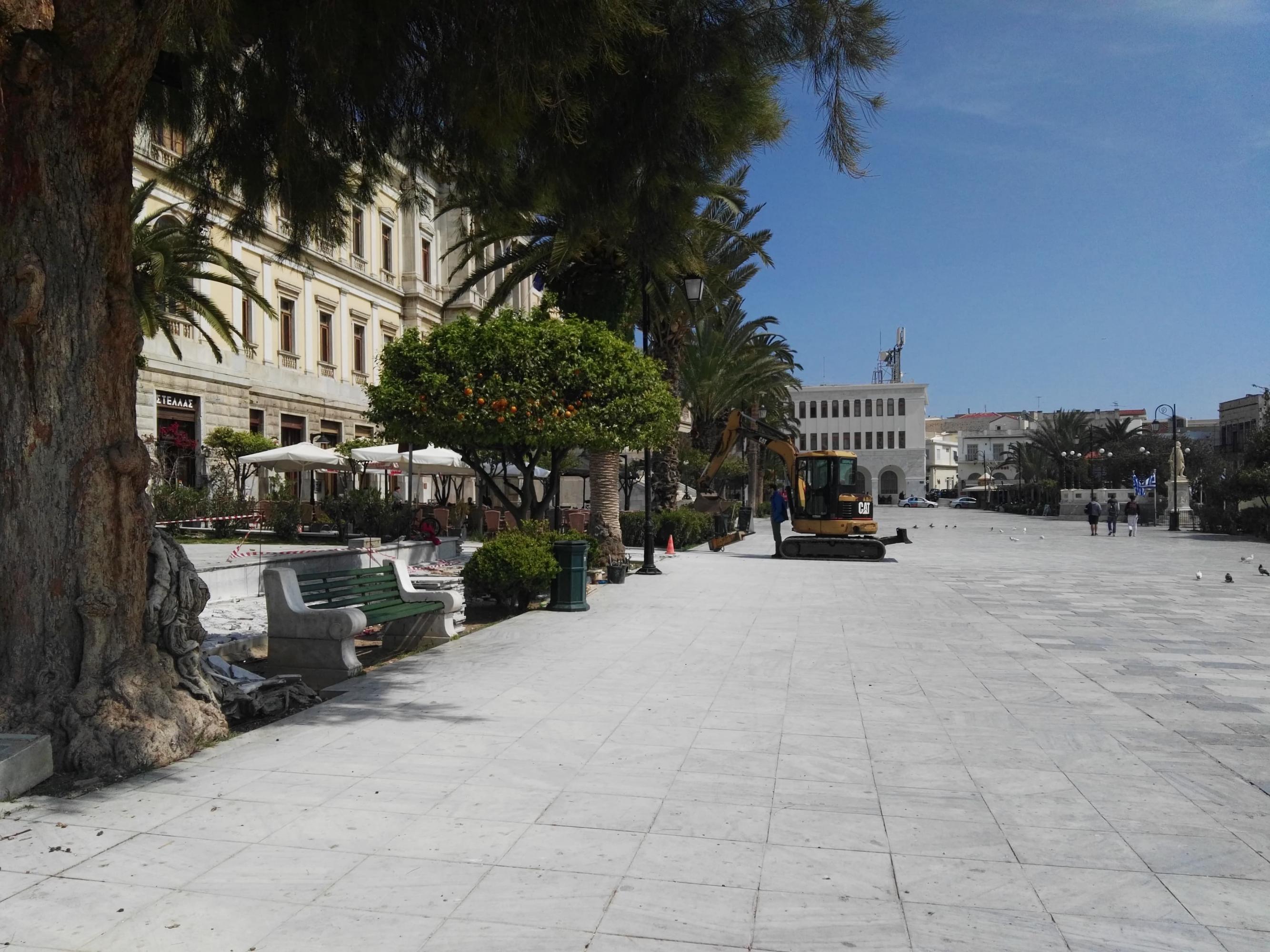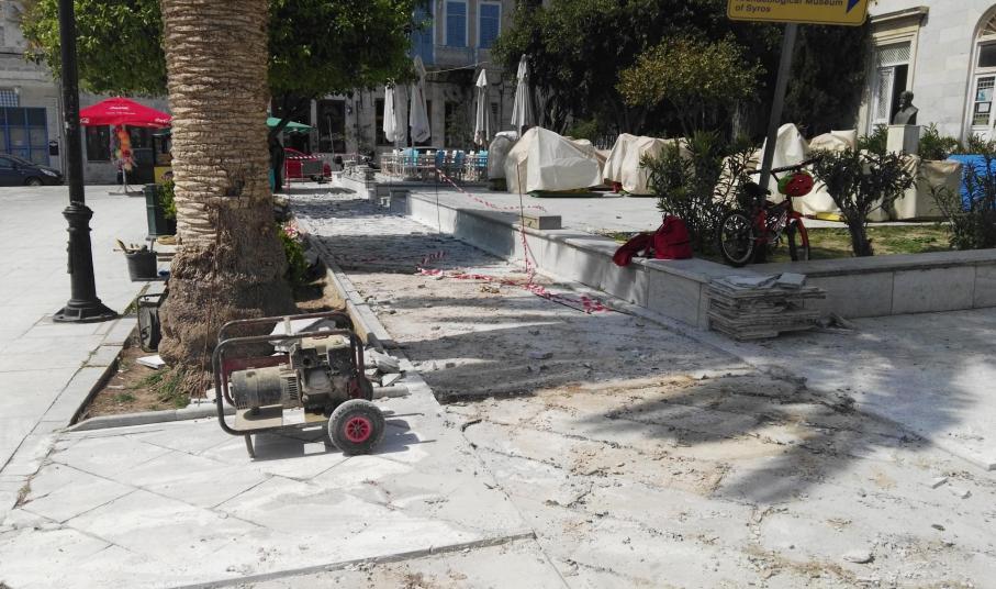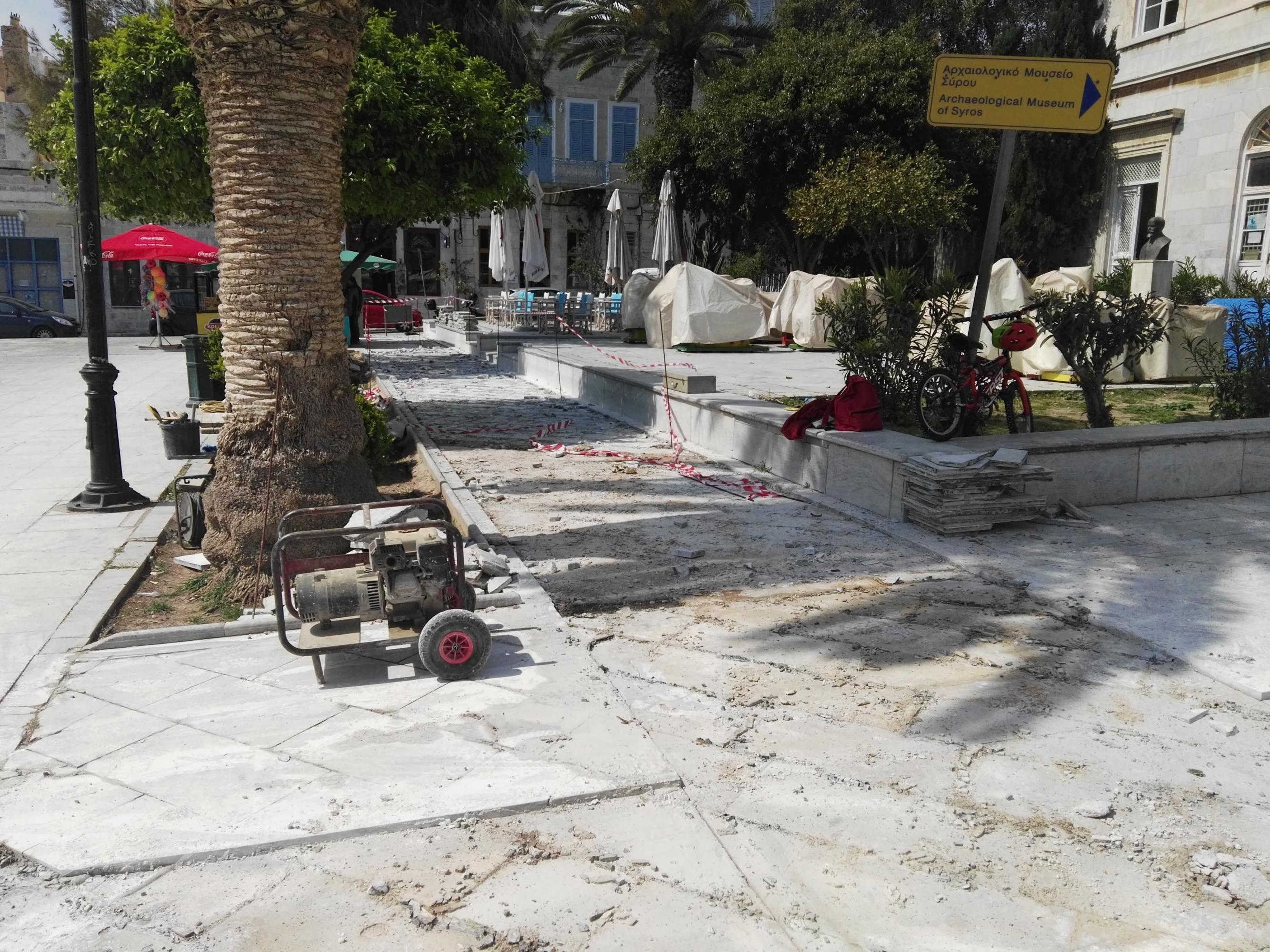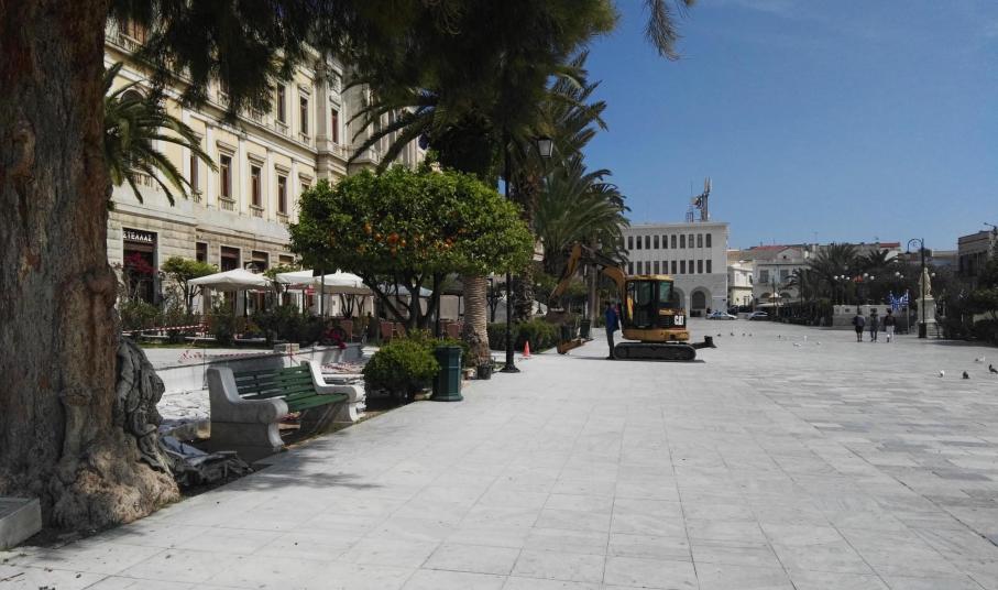 Σε εξέλιξη οι εργασίες στην πλατεία Μιαούλη από τη ΔΕΥΑ Σύρου