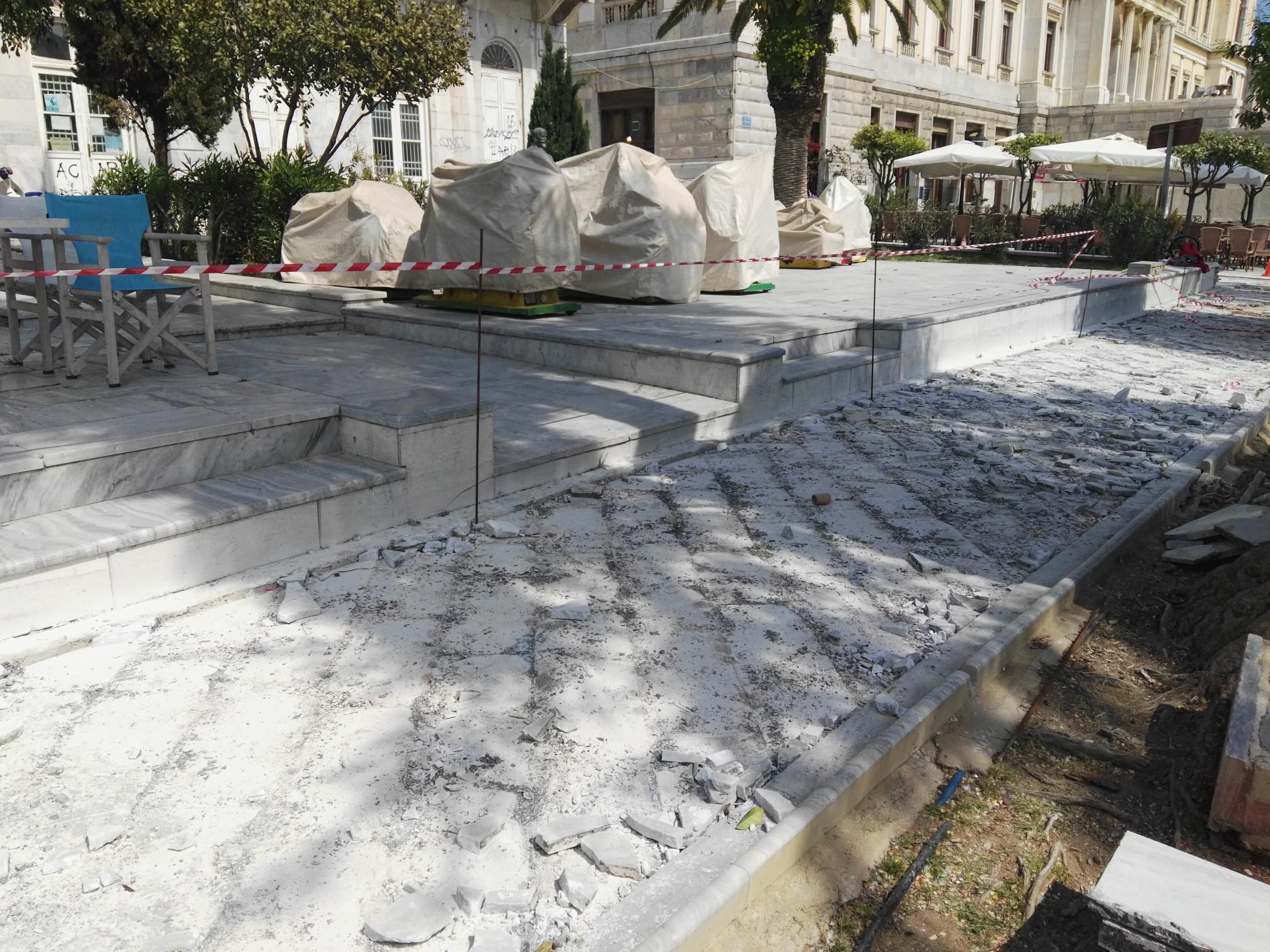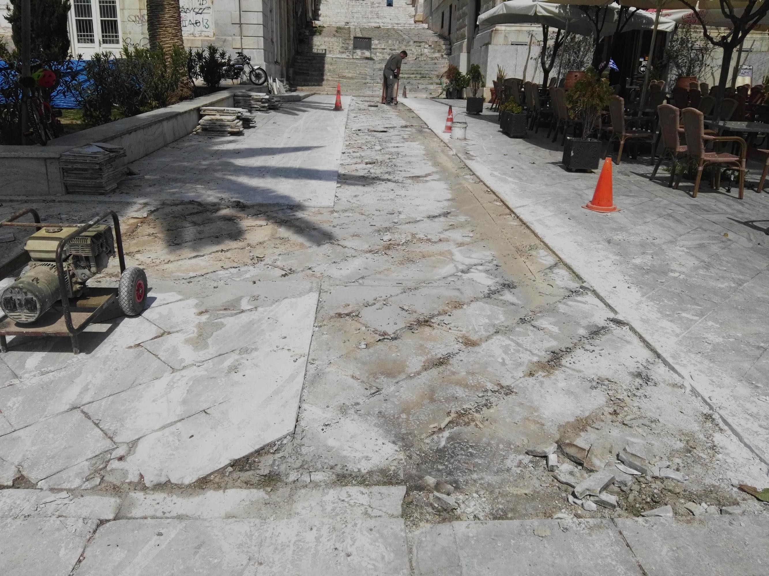 Η επανατοποθέτηση των μαρμάρινων πλακών θα σημάνει και την ολοκλήρωση του έργου.