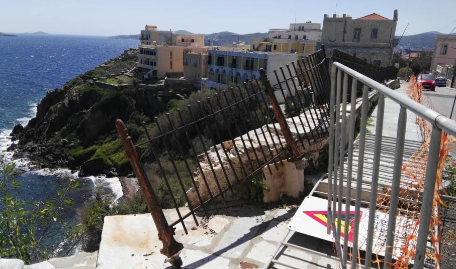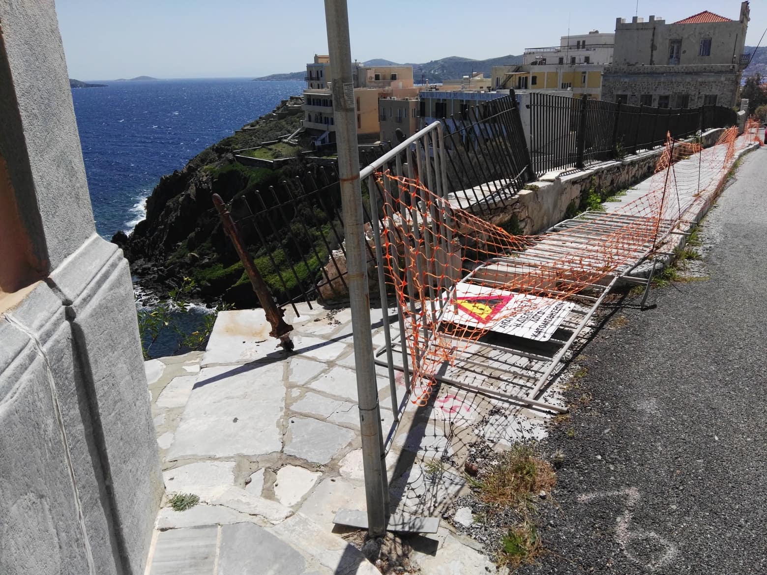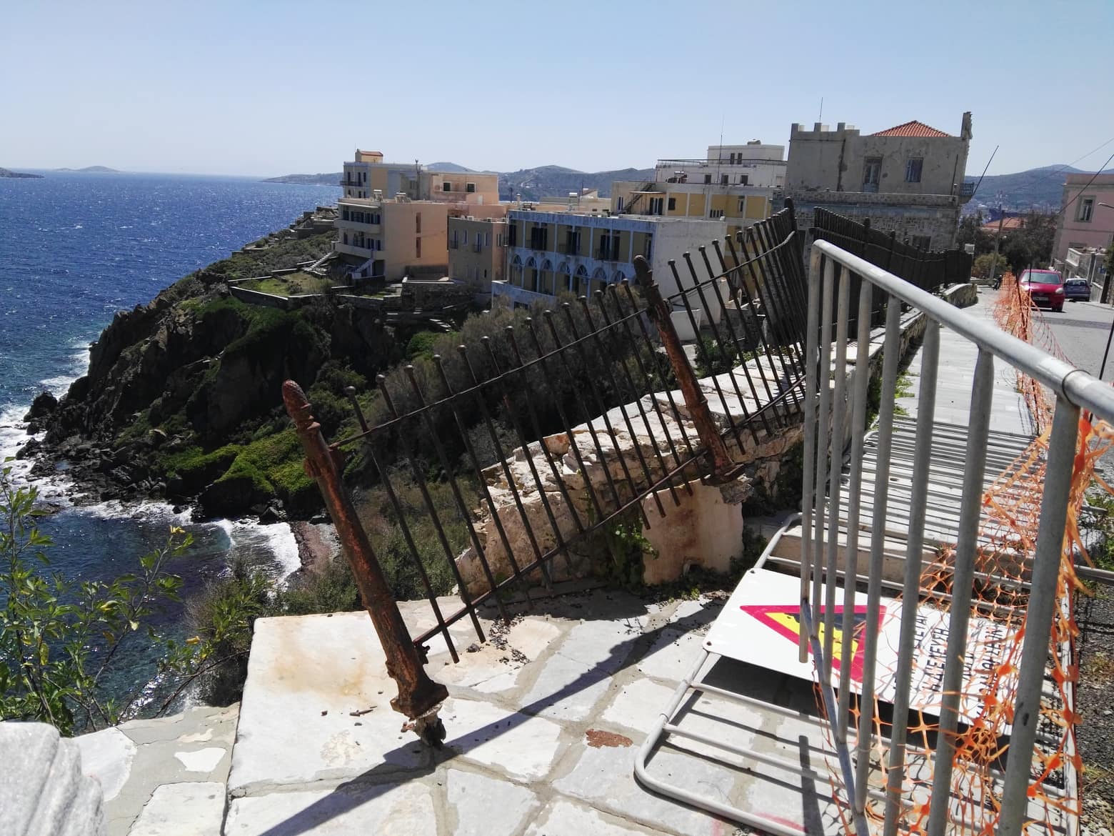 Το φωτογραφικό υλικό που συνοδεύει την παρούσα αναφορά αποτυπώνει πλήρως το πρόβλημα στην περιοχή, το οποίο είναι γνωστό και για την επούλωσή του ενεργεί εδώ και πολλούς μήνες ο Δήμος Σύρου – Ερμούπολης, ωστόσο, το κύριο θέμα στον παρόντα χρόνο εστιάζεται στα κενά... ασφάλειας που υπάρχουν.