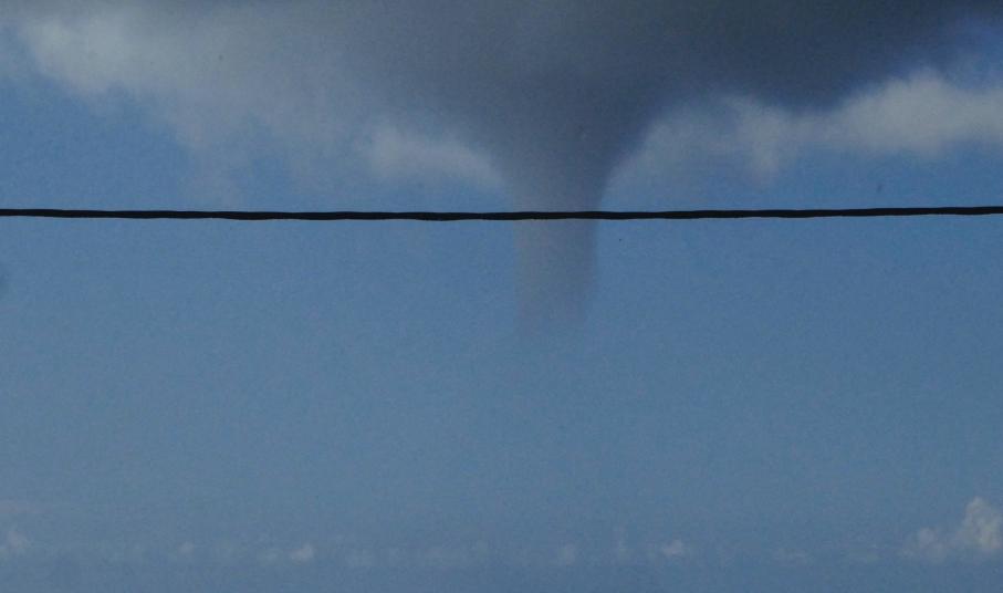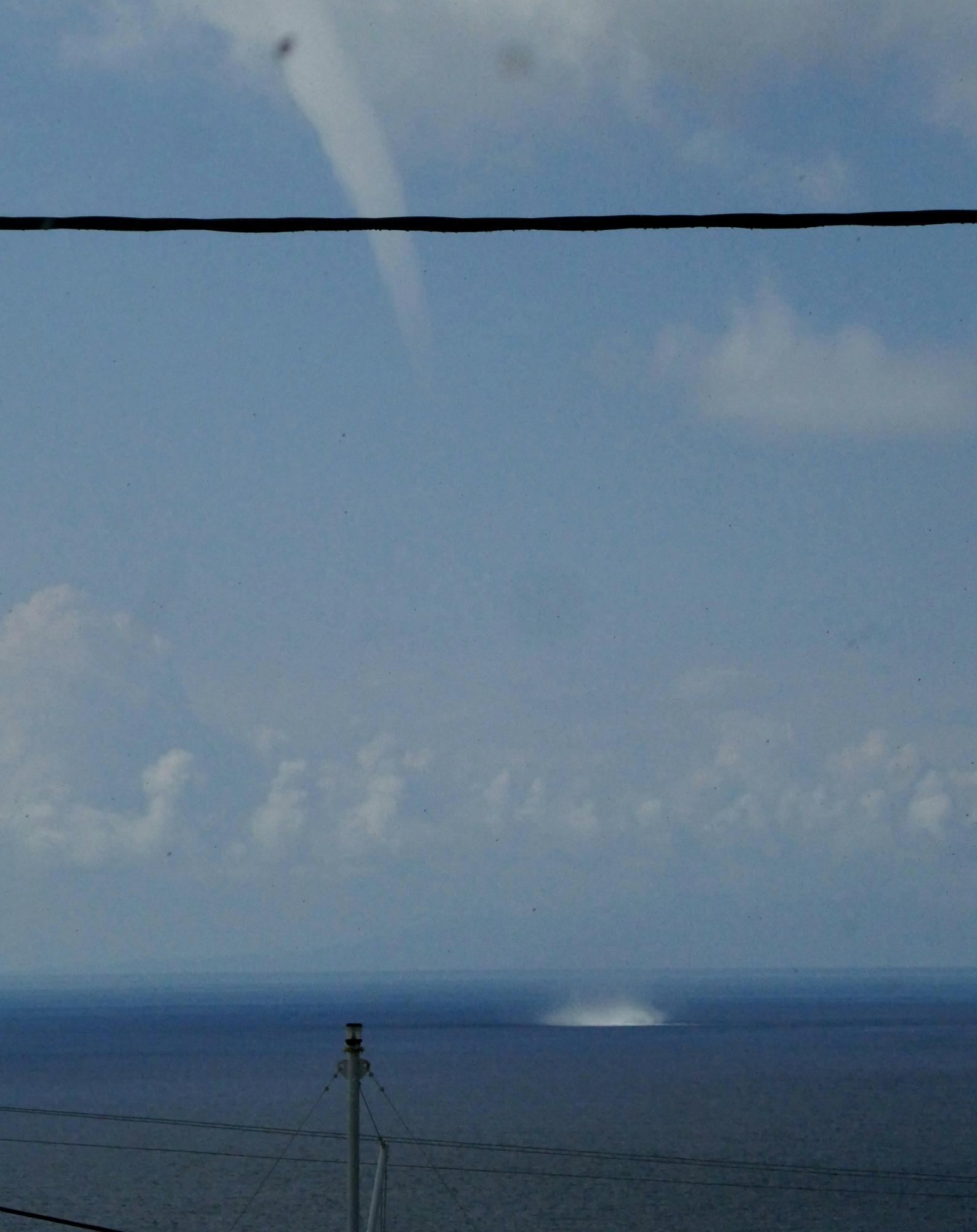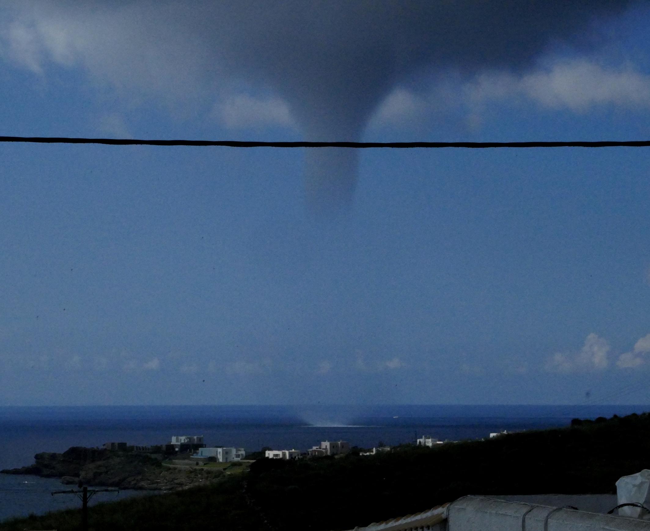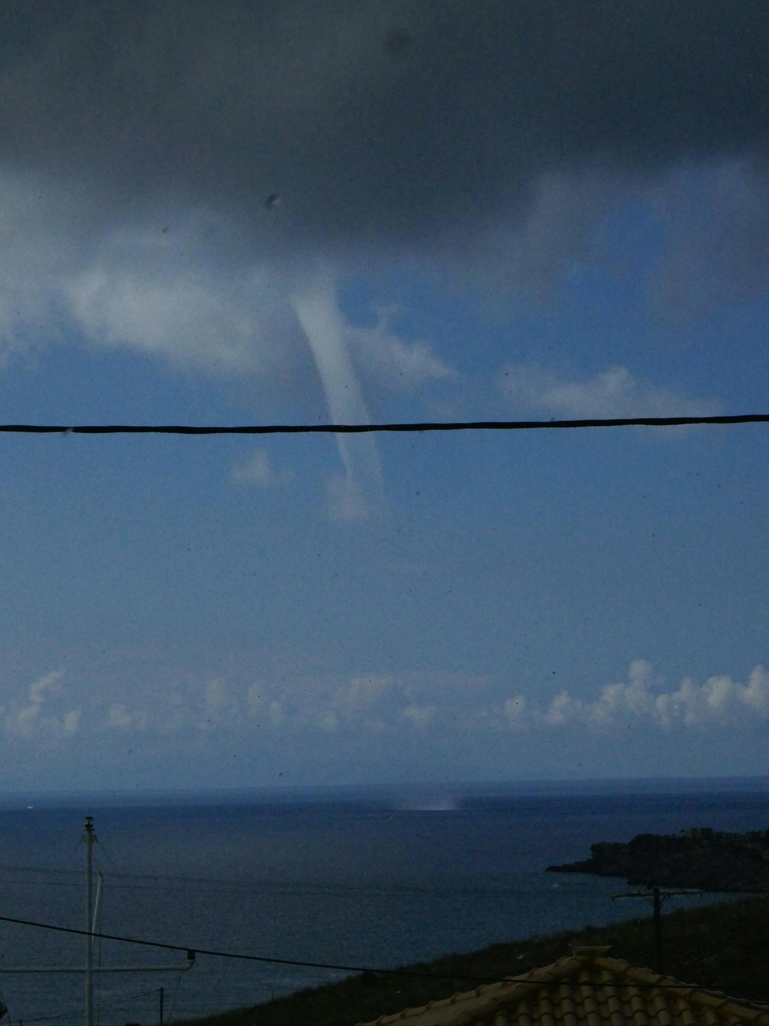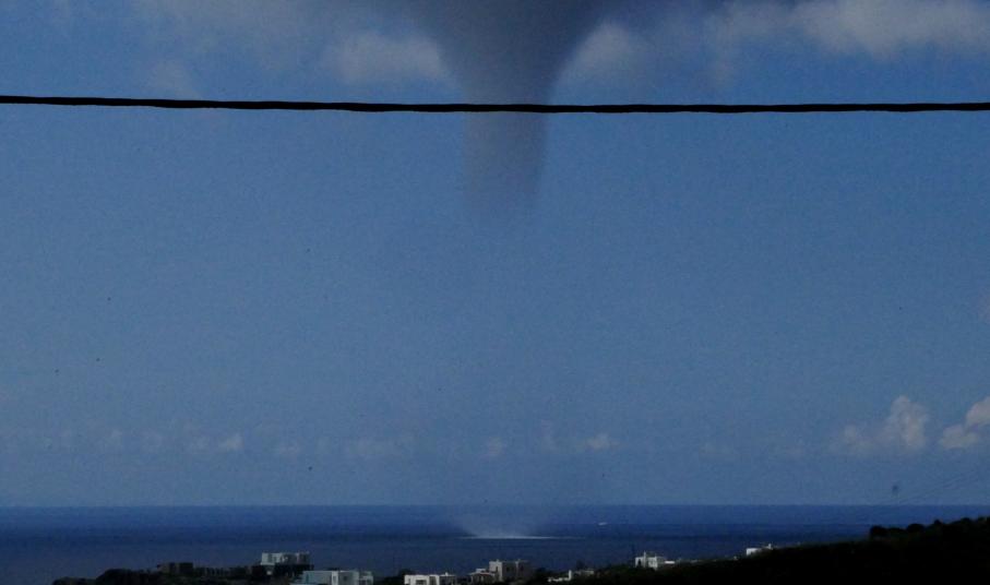 Την κίνηση του υδροστρόβιλου κατέγραψε επισκέπτρια της Σύρου από τον Μέγα Γιαλό, κατά τη χθεσινή ημέρα, οπότε και η κακοκαιρία υπήρξε έντονη στο νησί.