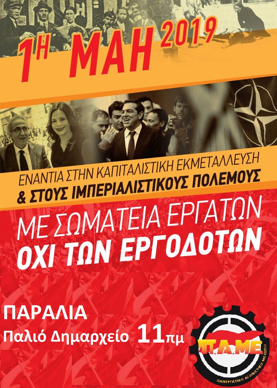 Η 1η Μάη είναι μέρα γιορτής της παγκόσμιας εργατικής τάξης. Μέρα σύμβολο του αγώνα με τα κατακόκκινα λάβαρα από τα ποτάμια εργατικού αίματος των πρωτοπόρων της τάξης μας, για να κατακτήσουμε δικαιώματα στη δουλειά και τη ζωή.