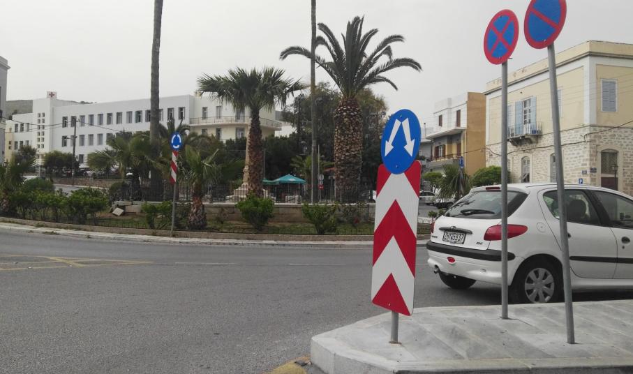 Παρομοίως, νέα σήματα τοποθετήθηκαν και στην πλατεία Κανάρη στην Ερμούπολη, καθώς αποτελεί το σημείο έναρξης της θέσης “Νησάκι” στο οποίο και καταφεύγουν... όλοι προκειμένου να αναζητήσουν μία θέση στάθμευσης.