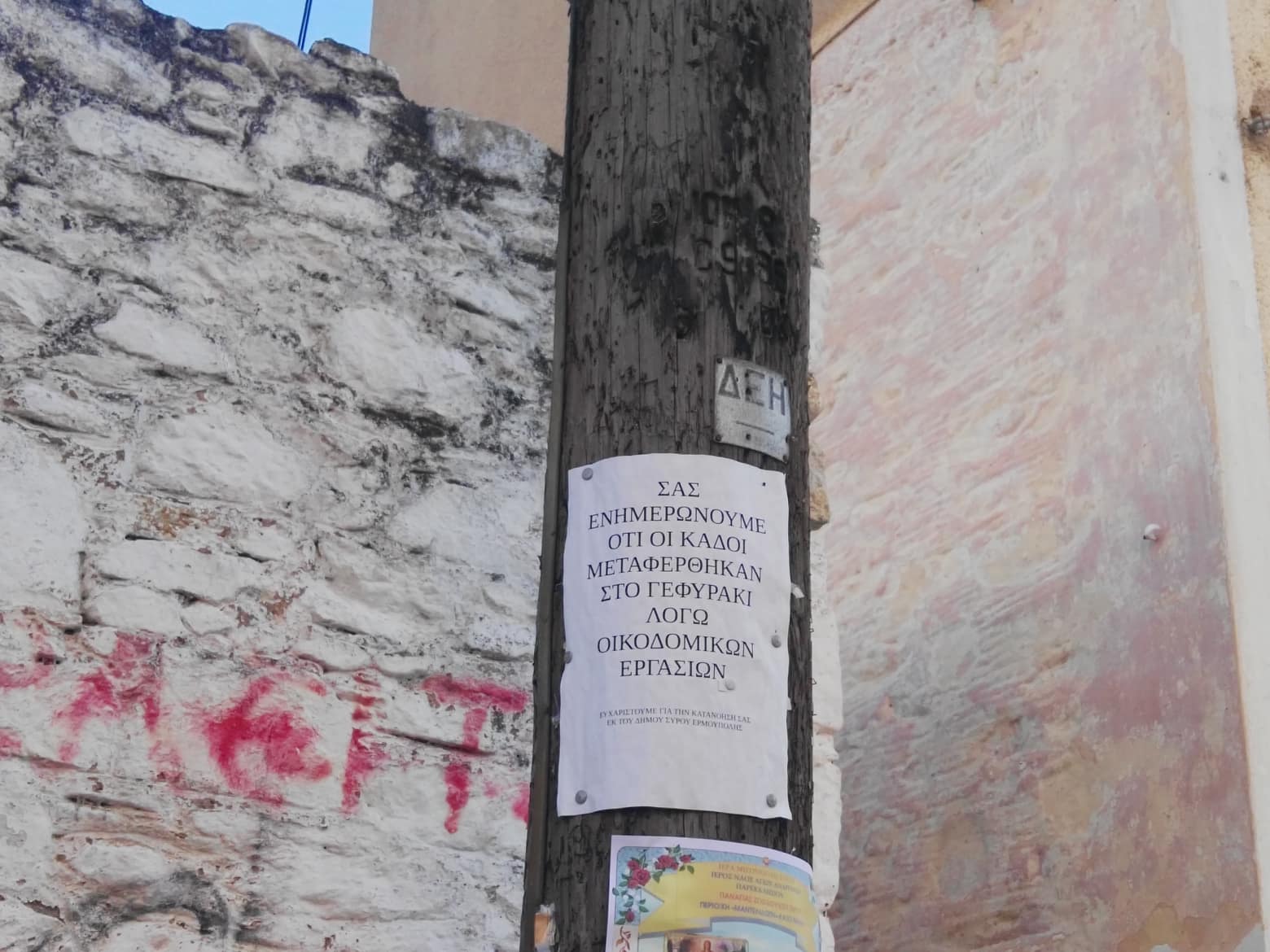 Μεγαλύτερη διαδρομή θα πρέπει να διανύουν πλέον οι κάτοικοι της οδού Κατραμάδου πλησίον του Ι.Ν. Αγίου Γεωργίου, προκειμένου να πετάξουν τα απορρίμματά τους, αφού με απόφαση του Δήμου Σύρου – Ερμούπολης απομακρύνθηκαν οι μοναδικοί κάδοι που υπήρχαν, προκειμένου να αναπτυχθούν - στο σημείο - οικοδομικές εργασίες.