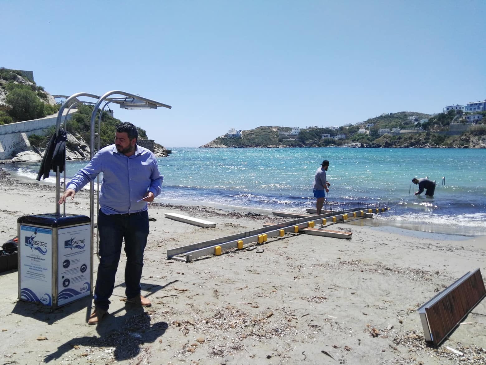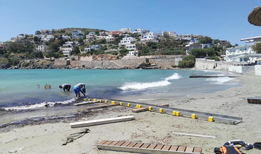 Η προμήθεια του εξοπλισμού έγινε από τον Δήμο Σύρου – Ερμούπολης μέσω του προγράμματος INTERREG V-A Ελλάδα – Κύπρος 2014 – 2020 στο πλαίσιο της πράξης “Τουρισμός χωρίς Εμπόδια για όλους” και οι εργασίες ξεκίνησαν χθες το πρωί, από την παραλία της Βάρης.