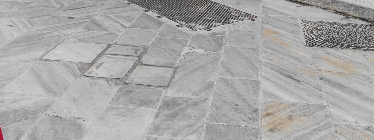 Αρκετές πλάκες είχαν αποκολληθεί κι ως εκ τούτου, η διέλευση κρινόταν επισφαλής από ορισμένα σημεία, σε όλο το μήκος της οδού.
