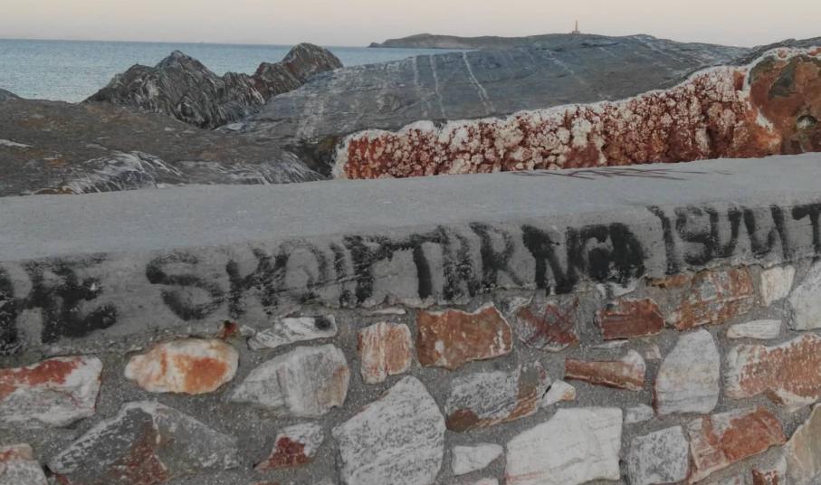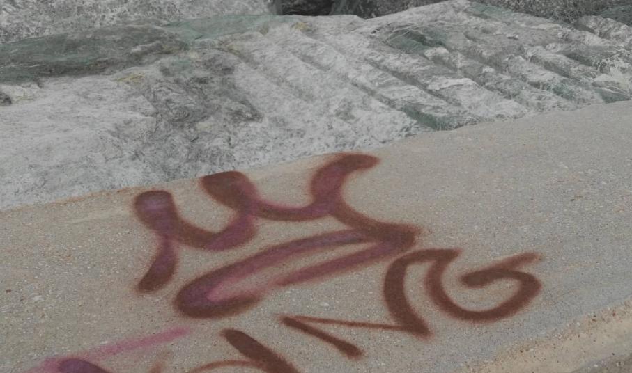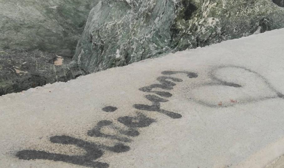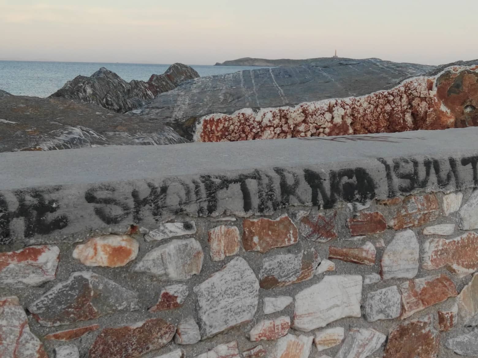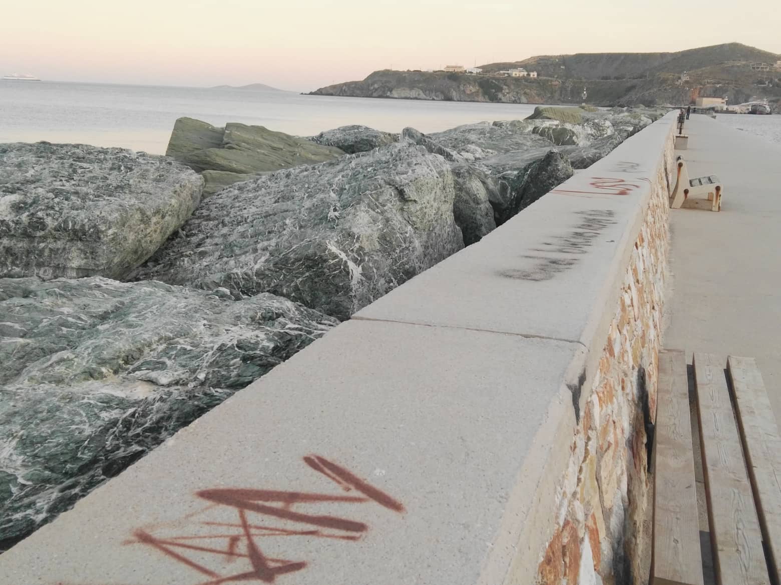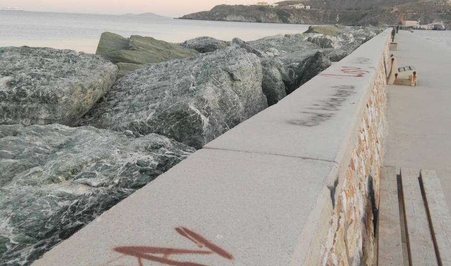 Με συνθήματα και γκράφιτι έχουν γεμίσει οι επιφάνειες του τμήματος περιπάτου του προσήνεμου μόλου στο Νησάκι της Ερμούπολης, αφού ασυνείδητοι, προχωρούν στην αναγραφή καινούργιων, σε σταθερή βάση, προκαλώντας την περαιτέρω αισθητική υποβάθμιση του σημείου.