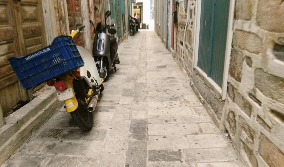 Παντελής απουσία εργασιών καθαριότητας καταγράφεται στις μικρές κάθετες - προς τον πεζόδρομο της Ερμούπολης – οδούς, η εικόνα των οποίων προδίδει την έλλειψη επαρκούς προγραμματισμού για τα μικρά “περάσματα”, που χρησιμοποιούν κάτοικοι κι επισκέπτες.