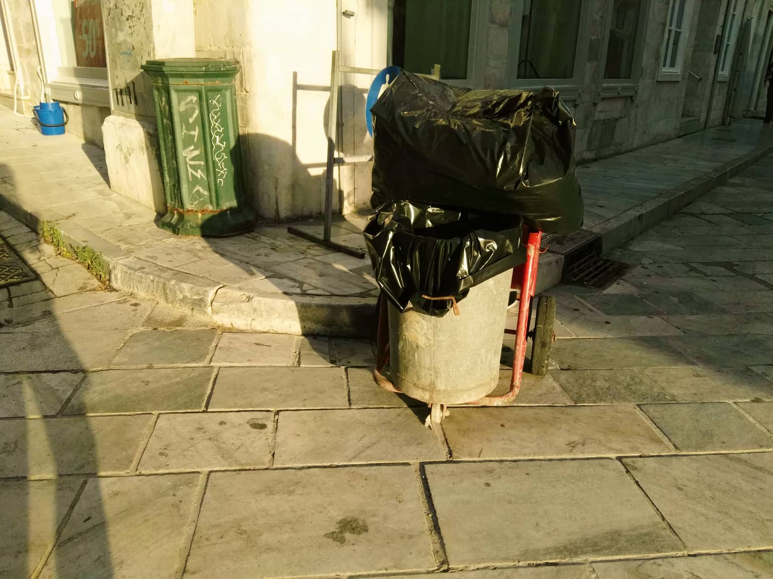 Ωστόσο, η κατάσταση στην οποία βρίσκονται οι μικρές κάθετες οδοί προς τις Θυμ. Σπερχειού και Πρωτοπαπαδάκη, έρχονται να δείξουν την αδράνεια των αρμοδίων για τη λεπτομερή φροντίδα της πόλης. Στίγματα από σακούλες απορριμμάτων, άχρηστες συσκευασίες πεταμένες δίπλα στα κτίρια, καθώς και απορρίμματα κάθε λογής, έρχονται να συνθέσουν ένα εξαιρετικά αρνητικό σκηνικό στην καρδιά της Ερμούπολης για το οποίο φέρουν ευθύνη αρκετές πλευρές.